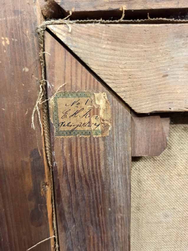 Heyn, Heinrich Eduard, 1856 - 1932.  Gebirgslandschaften, Öl a. Lwd. a. Keilrahmen, 2.Hälfte 19.Jh. Rechts unten sign. "H.E. Heyn".  H.x B.  63/45 cm  x  50/32 cm. Rs. alter Klebezettel Bez.: " No. 1?? / E.H.Heyn / Gebirgslandschaft". In zeittypischen original Rahmen, diese mit kleineren Beschädigungen und Nutzungsspuren.