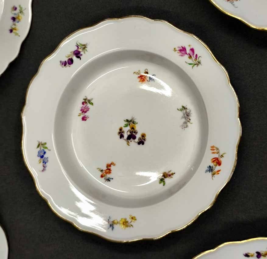 Meissen um 1900, Streublume, 5x tiefe Teller, 1.Wahl, Goldrand