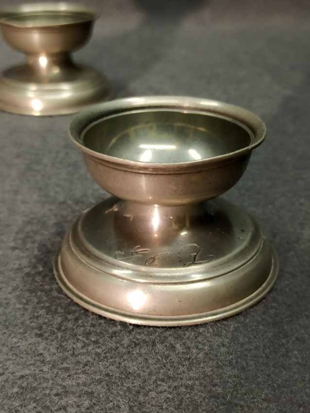 2x Salieren um 1850, Zinn Gewürzschälchen