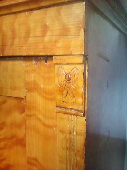 Nicht mehr verfügbar! Kleiderschrank um 1910; Großer zweitüriger Schrank unten ein Schubkasten, zerlegbar. Unrestaurierter guter Zustand, mit Gebrauchsspuren.