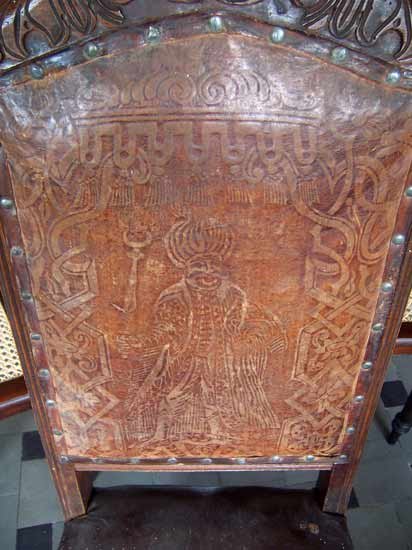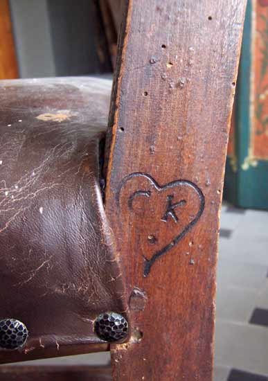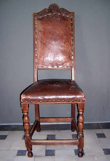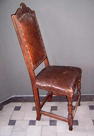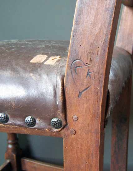 Sitzfläche und Lehne Leder, in der Rückenlehne möglicherweise original.