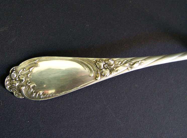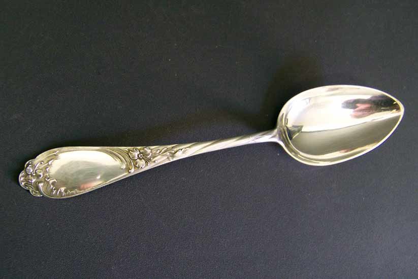Nicht mehr verfügbar!! Silberlöffel um 1900.   Sehr qualitätvolle Gestaltung; floral verzierter Stiel , i.d. unteren Hälfte gedreht, spitzovale Laffe. Ohne Monogram.