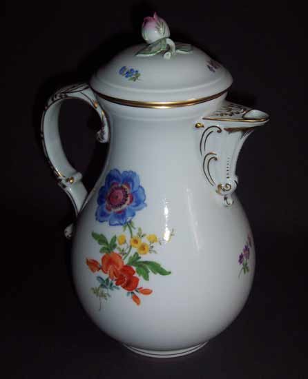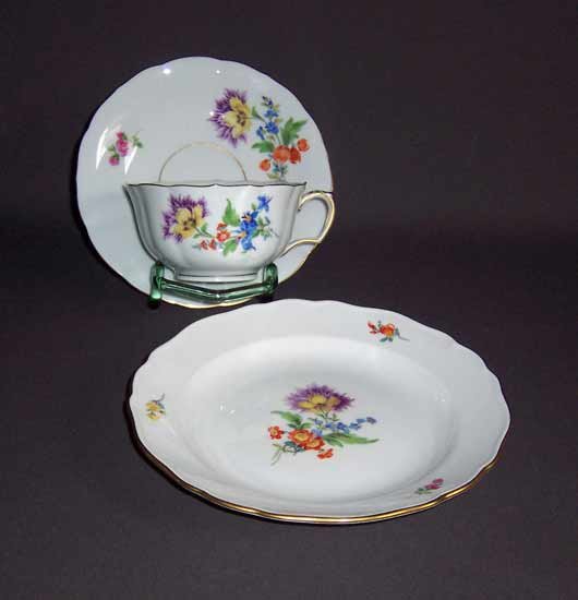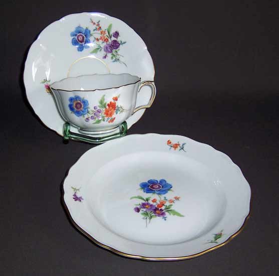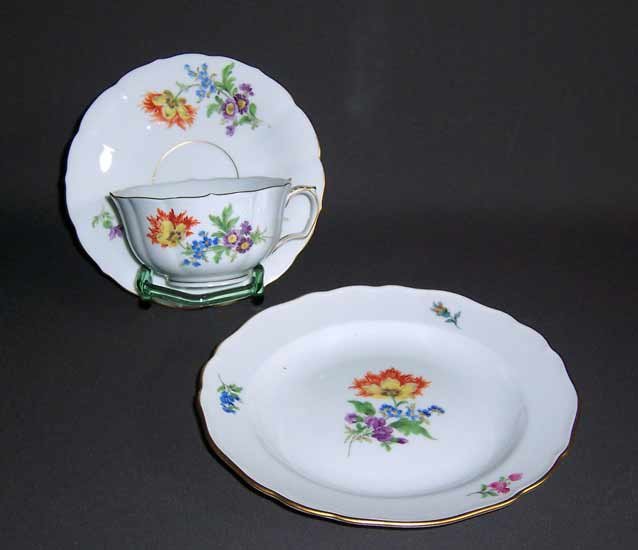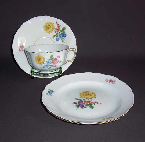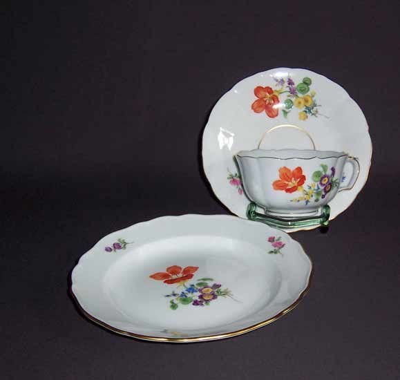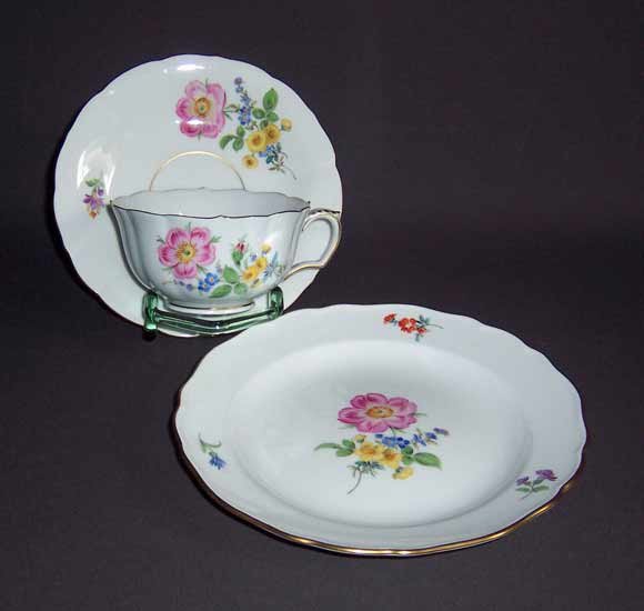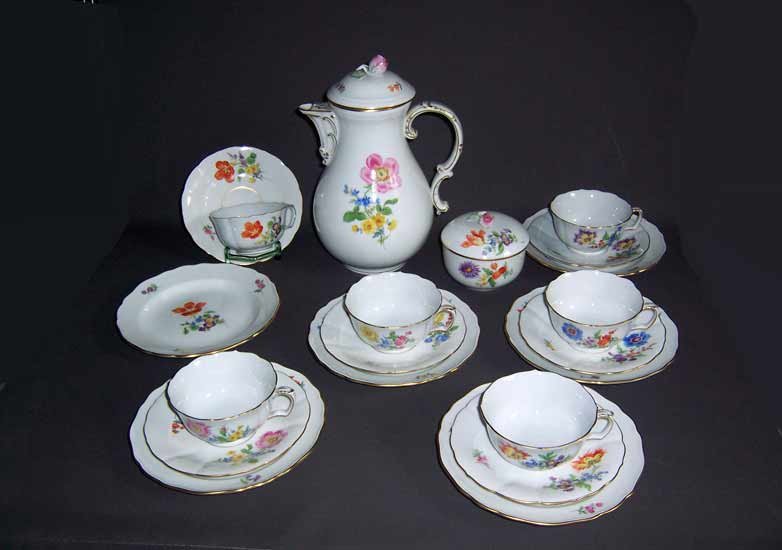 NICHT MEHR VERFÜGBAR!!  Teeservice der Porzellanmanufaktur Meißen. Blumendekor mit Goldrand.