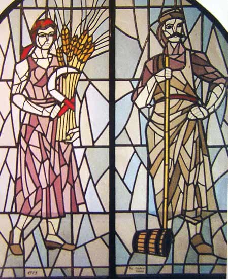 Bleiverglasung in Stahlrahmen gefasst. Sign. Frd. Meißner. Datiert 1973.