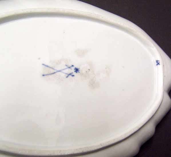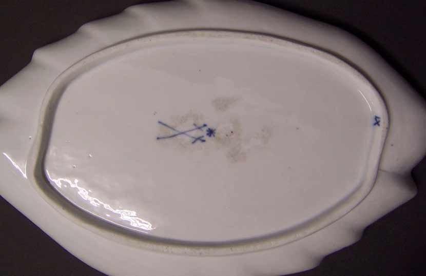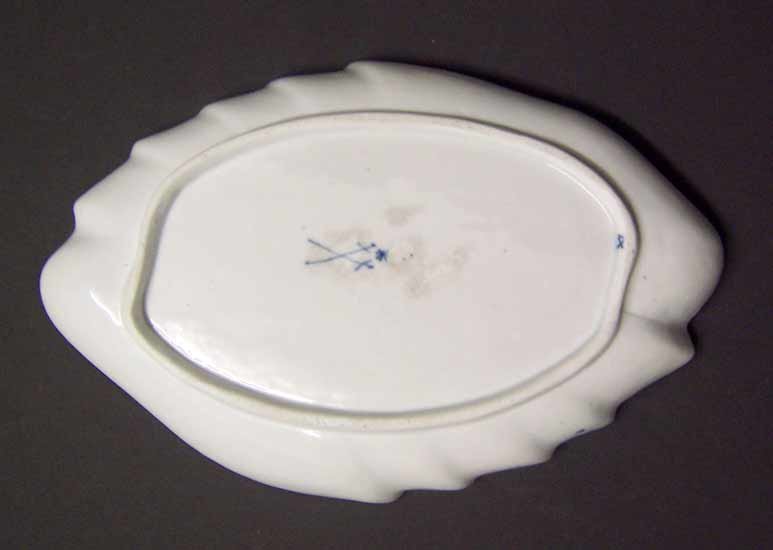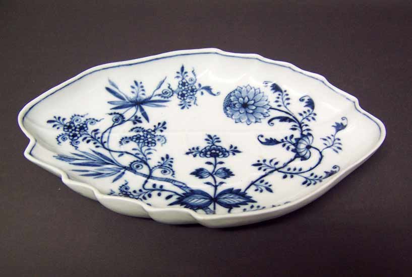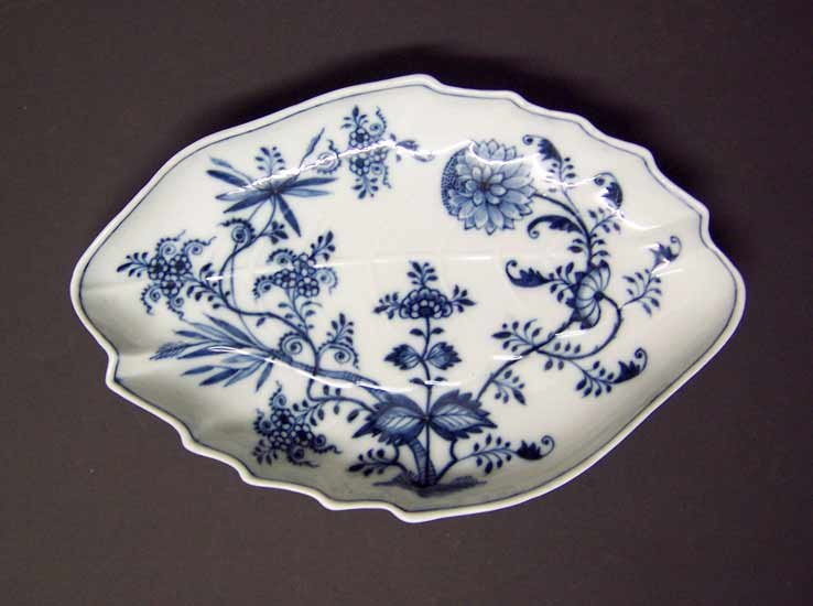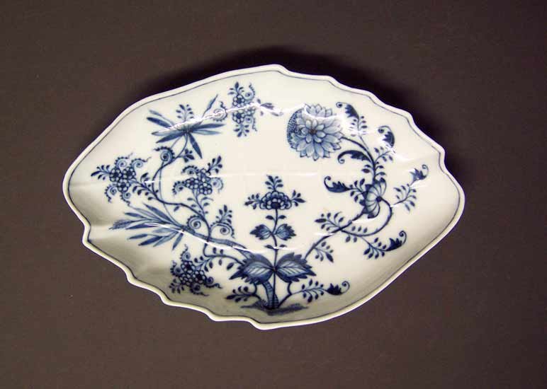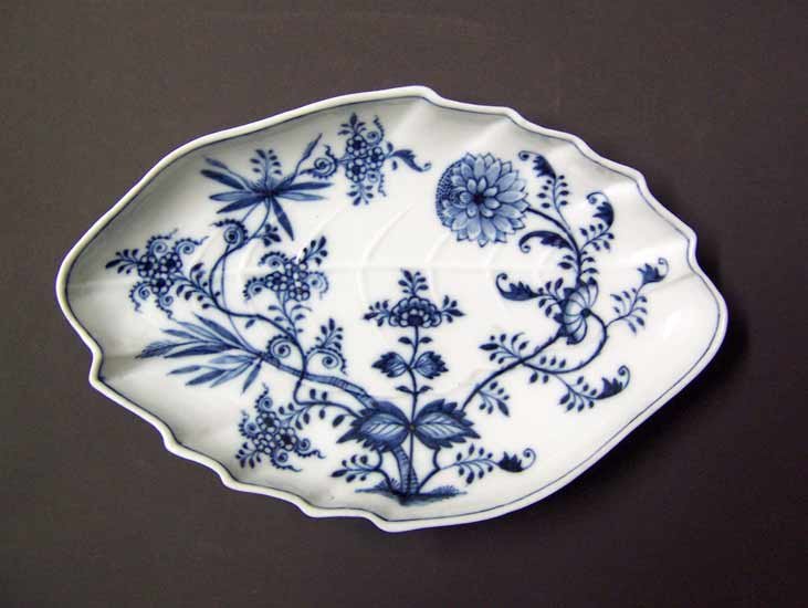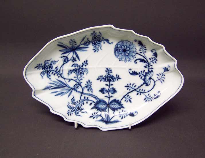 NICHT MEHR VERFÜGBAR!!  Zwiebelmuster Blattschale, Meissen, Ende 18.Jh.  Blaue Schwertermarke mit Markolinistern 1774 - 1814.