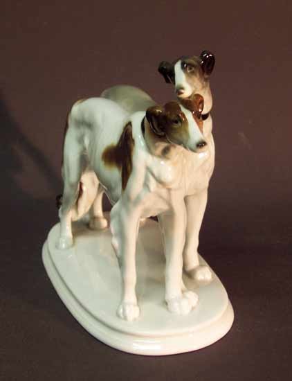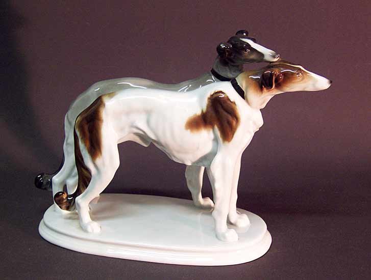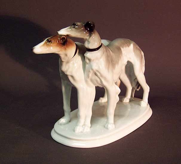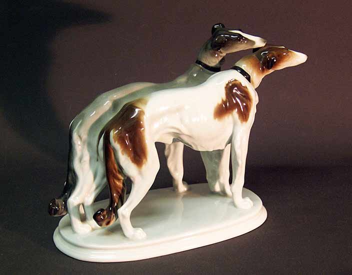 Windhundgruppe, 2 Barsoi. Manufaktur ENS Volkstedt Thüringen um 1920, Entwurf Anton Büschelberger.
