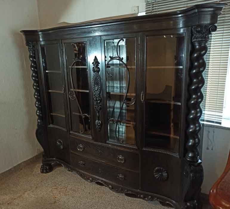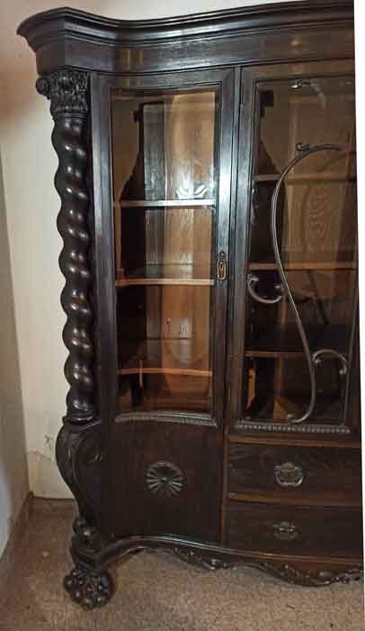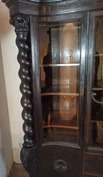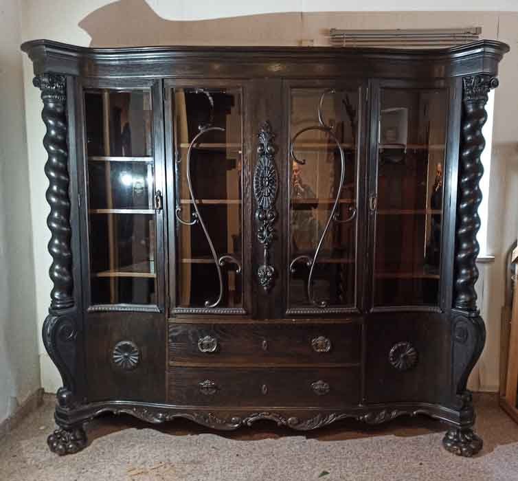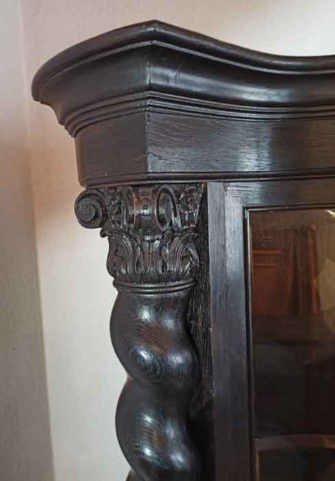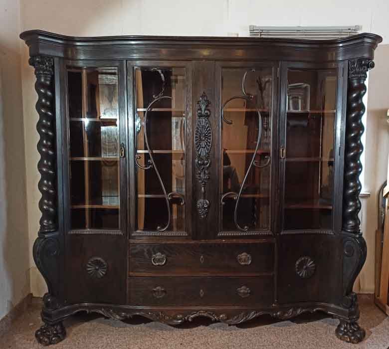 Reserviert! Bücherschrank mit Löwenfüßen und gedrehten Vollsäulen um 1910