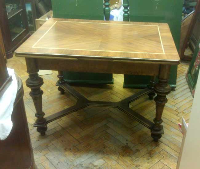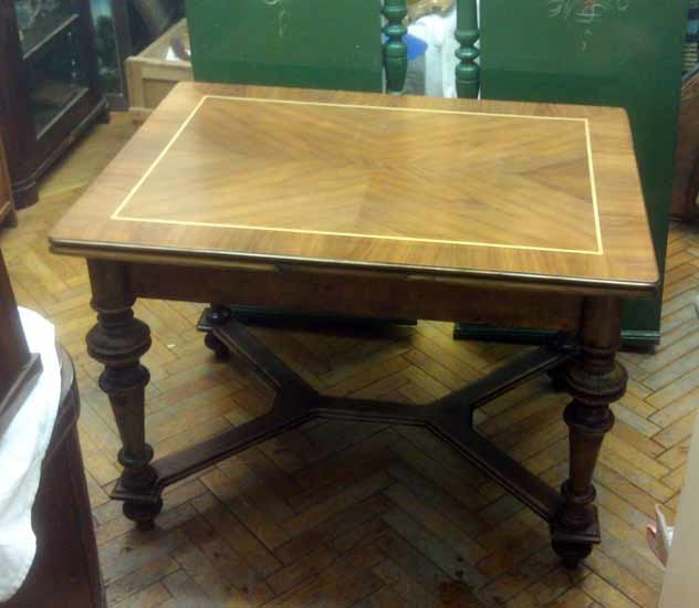 Tisch, Ausziehtisch, Gründerzeit um 1880. Nußbaum furniert.