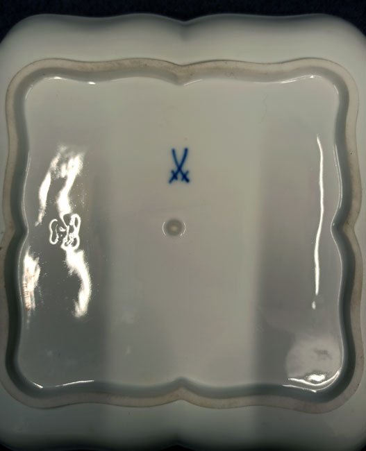 1. Wahl, Schwertermarke ohne Schleifstriche. Sehr guter Zustand ohne Beschädigungen. L. x B. 21,5 x 21,5 cm, H. 3,5 cm