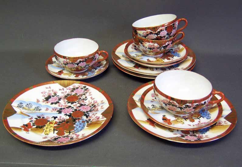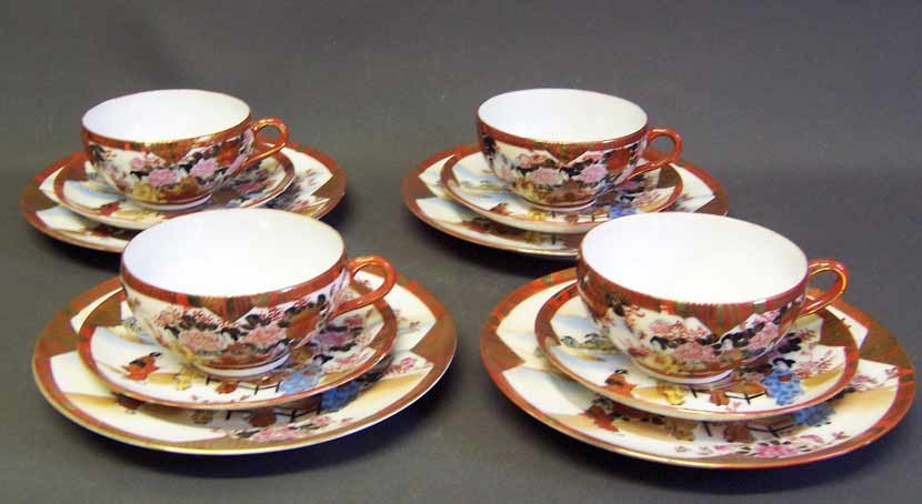 4 Teegedecke 3 teilig, Tasse, Untertasse, Kuchenteller. Hauchdünnes Porzellan. Tadelloser Zustand.