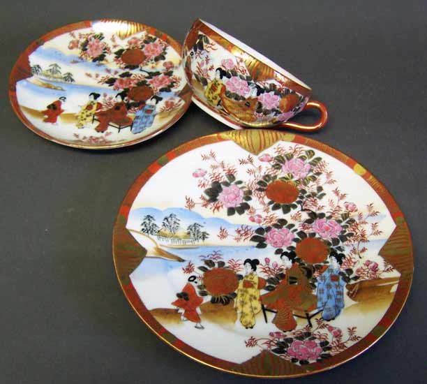 Tasse H 5 cm, D. ca 9,5 cm; Unterteller D. 14 cm; Kuchenteller D. 18,5 cm