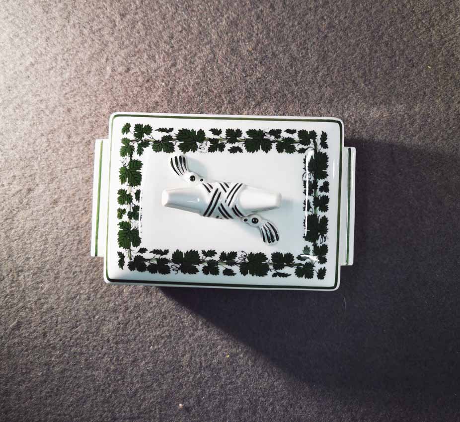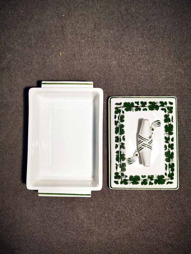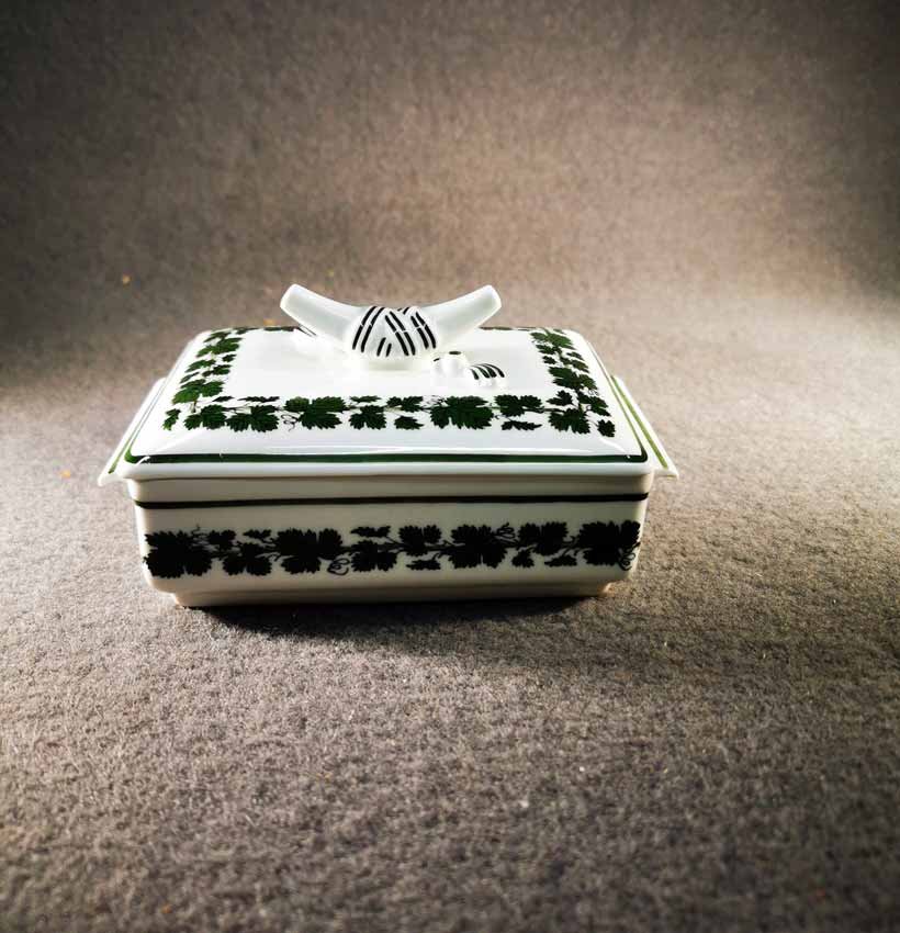 Meissen; Schmuckdose Art Deco Entw. von Paul Börner, Weinlaubdekor.