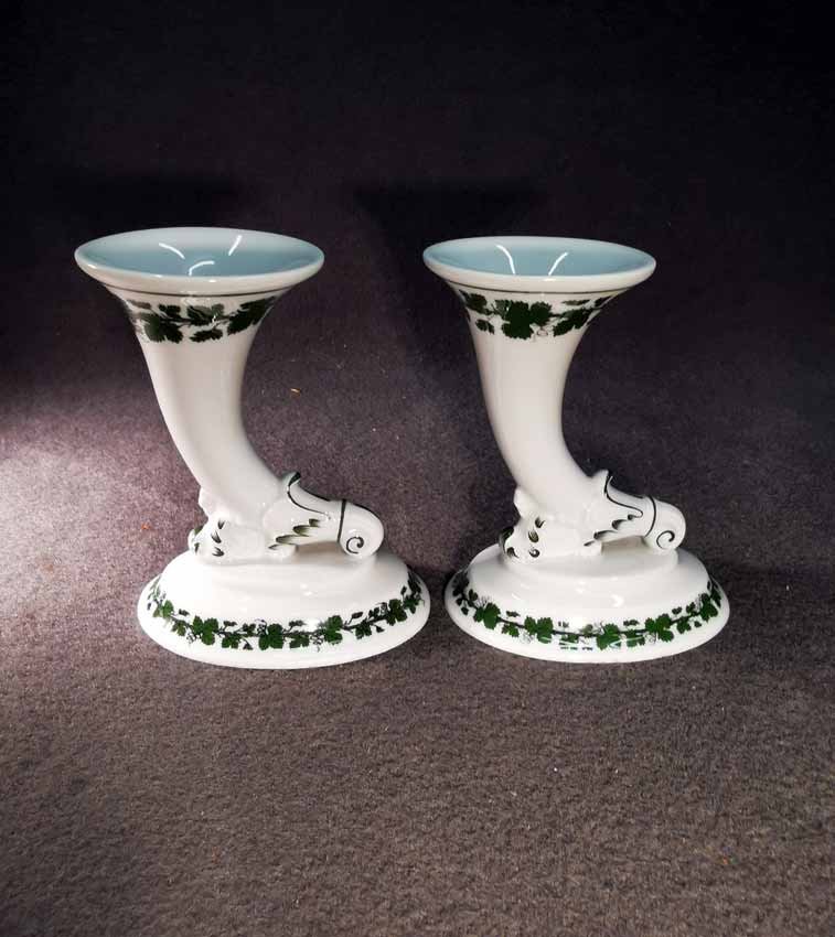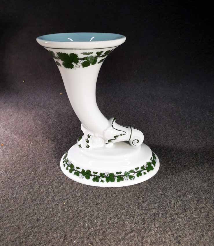 Meissen, Vase in Form eines Füllhorns, Weinlaub. Dz. zwei Mal vorhanden, auch als Pärchen zu erwerben.