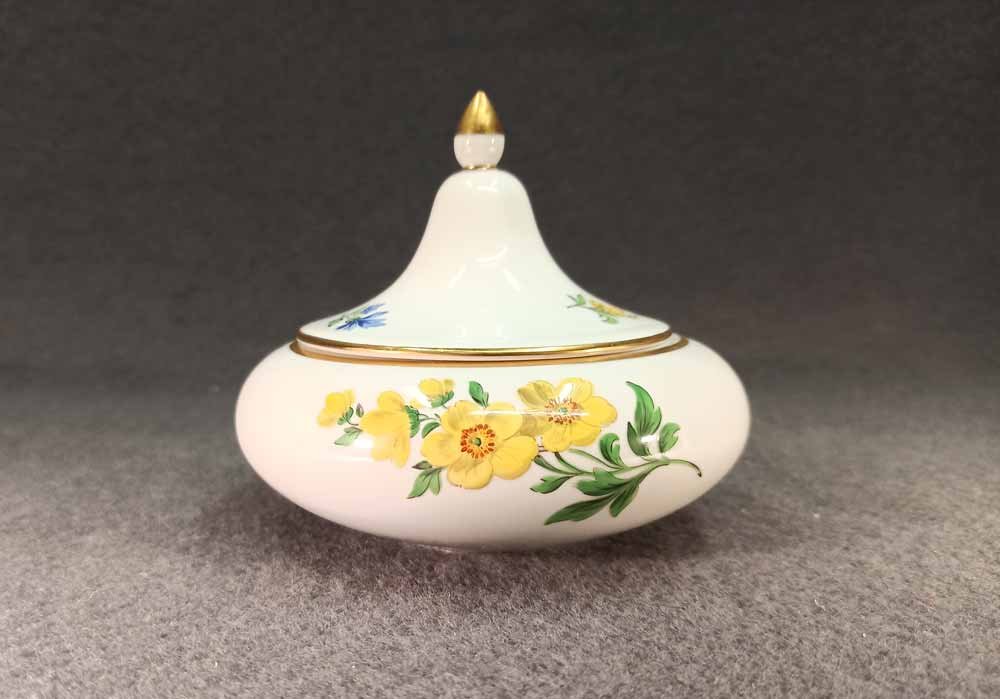 Manufaktur Meissen, Dose mit Blumenmalerei.