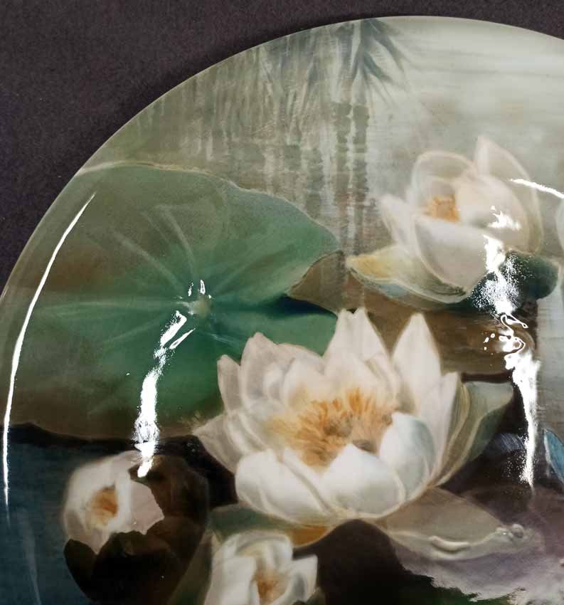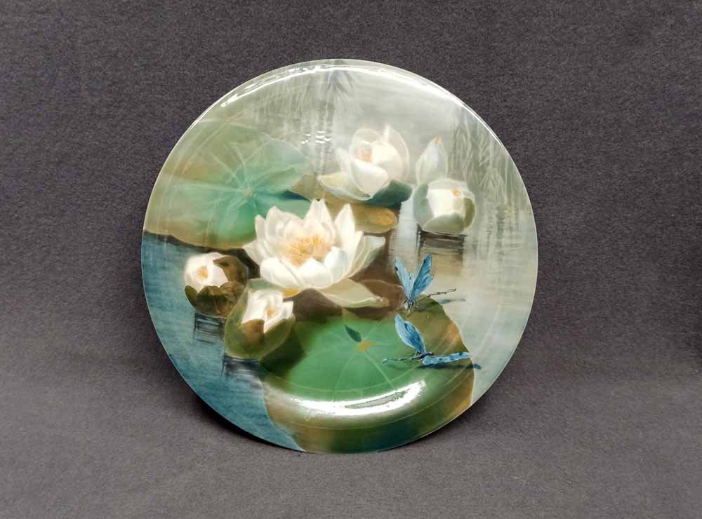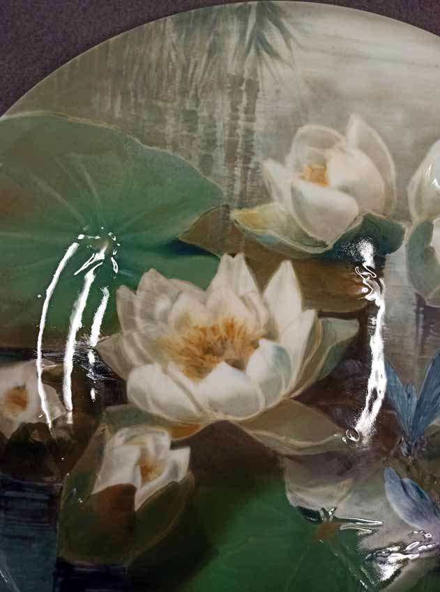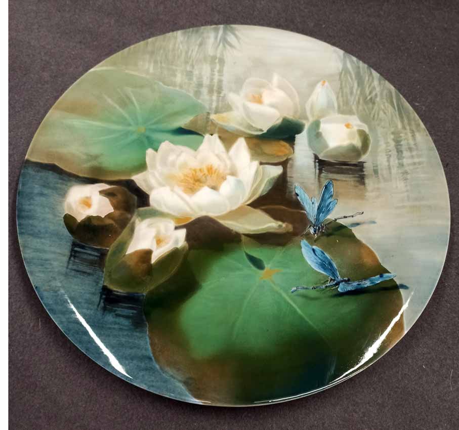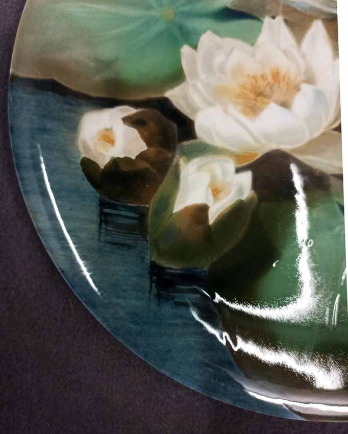 Teller - Wandbild; Manufaktur Meissen, verm. Otto Eduard Voigt um 1890 - 1900. Seerosen und Libellen. Äußerst seltenes Objekt, mglw. Unikat.