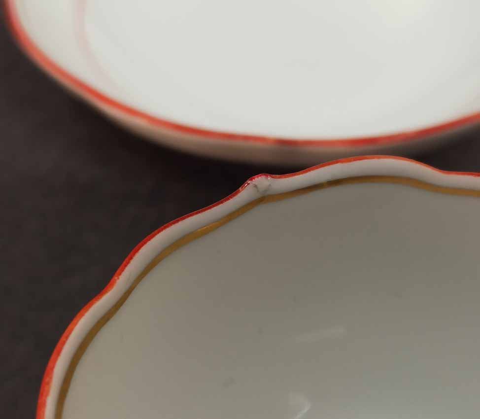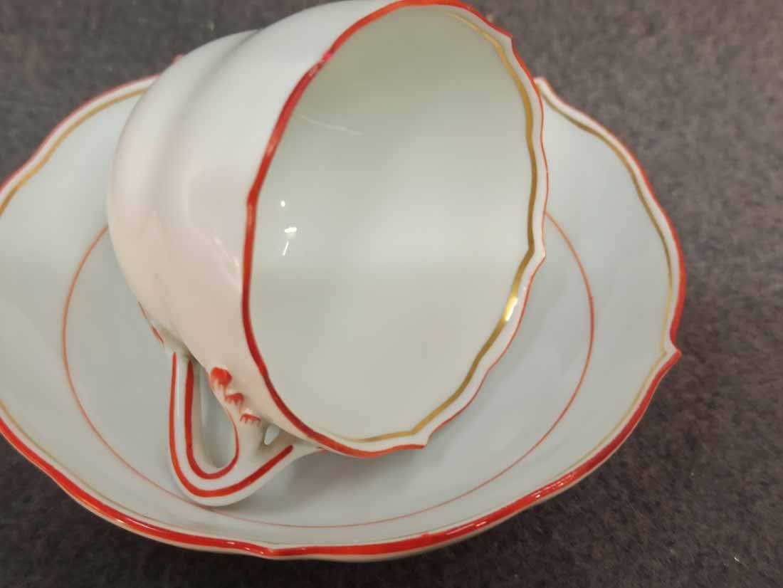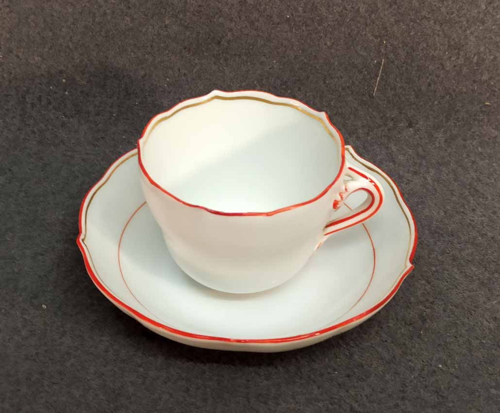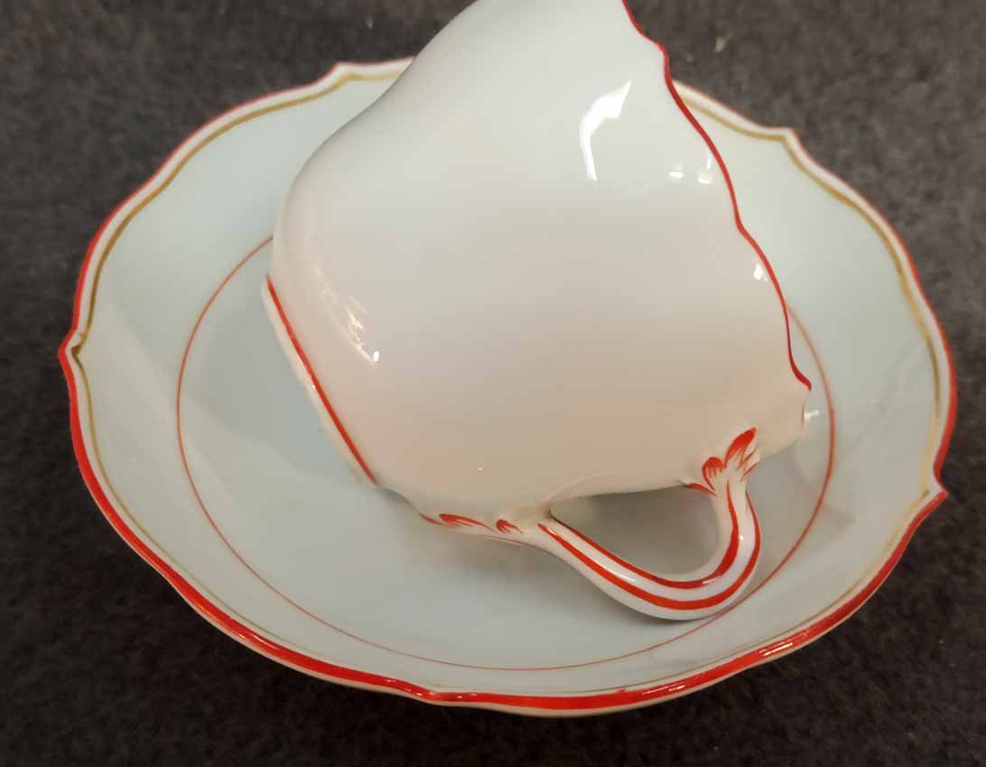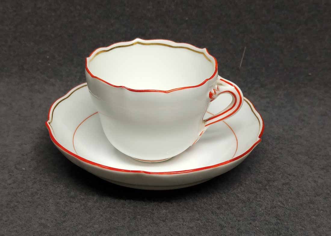 Mokkatasse, Meissen, Rote Koralle mit Goldrand.