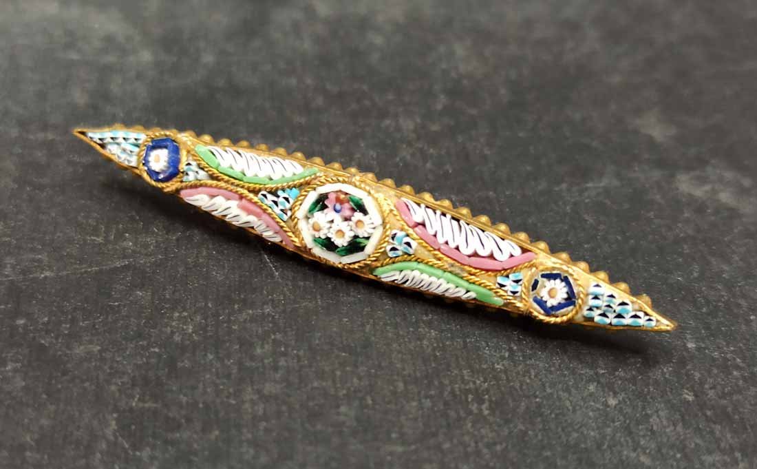 Brosche, Millefiori. Mikromosaik wohl Italien. L. 6 cm.
