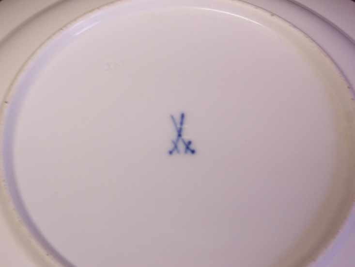 Blaue Schwertermarke der Manufaktur Meissen, Knaufschwerter um 1880 bis 1900, 2 mal gestrichen.