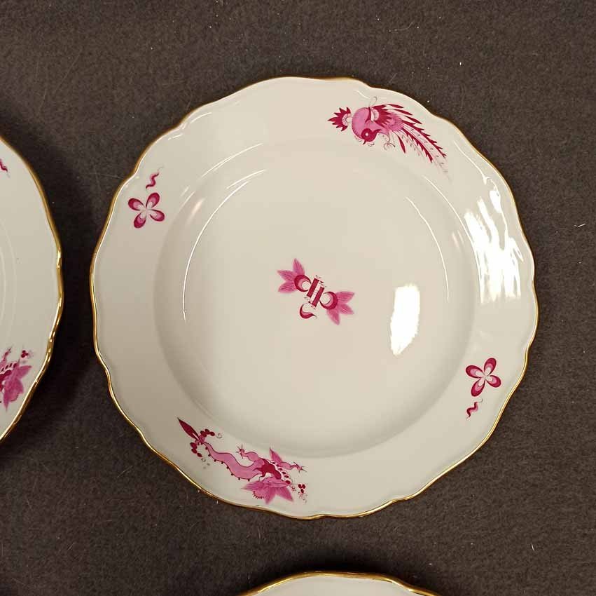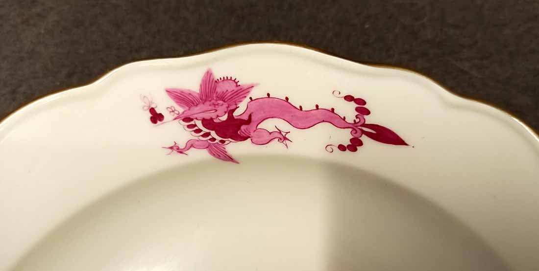 Meissen 4x Teller Purpurmalerei mit Drachen und Goldrand, auch einzeln