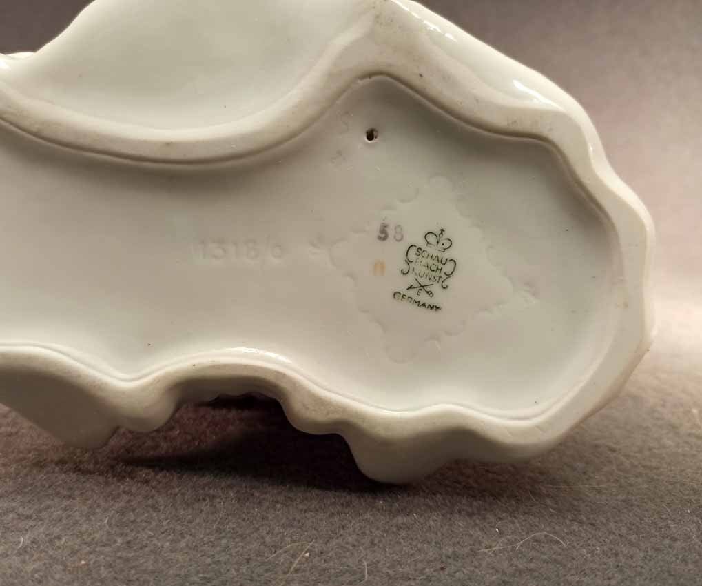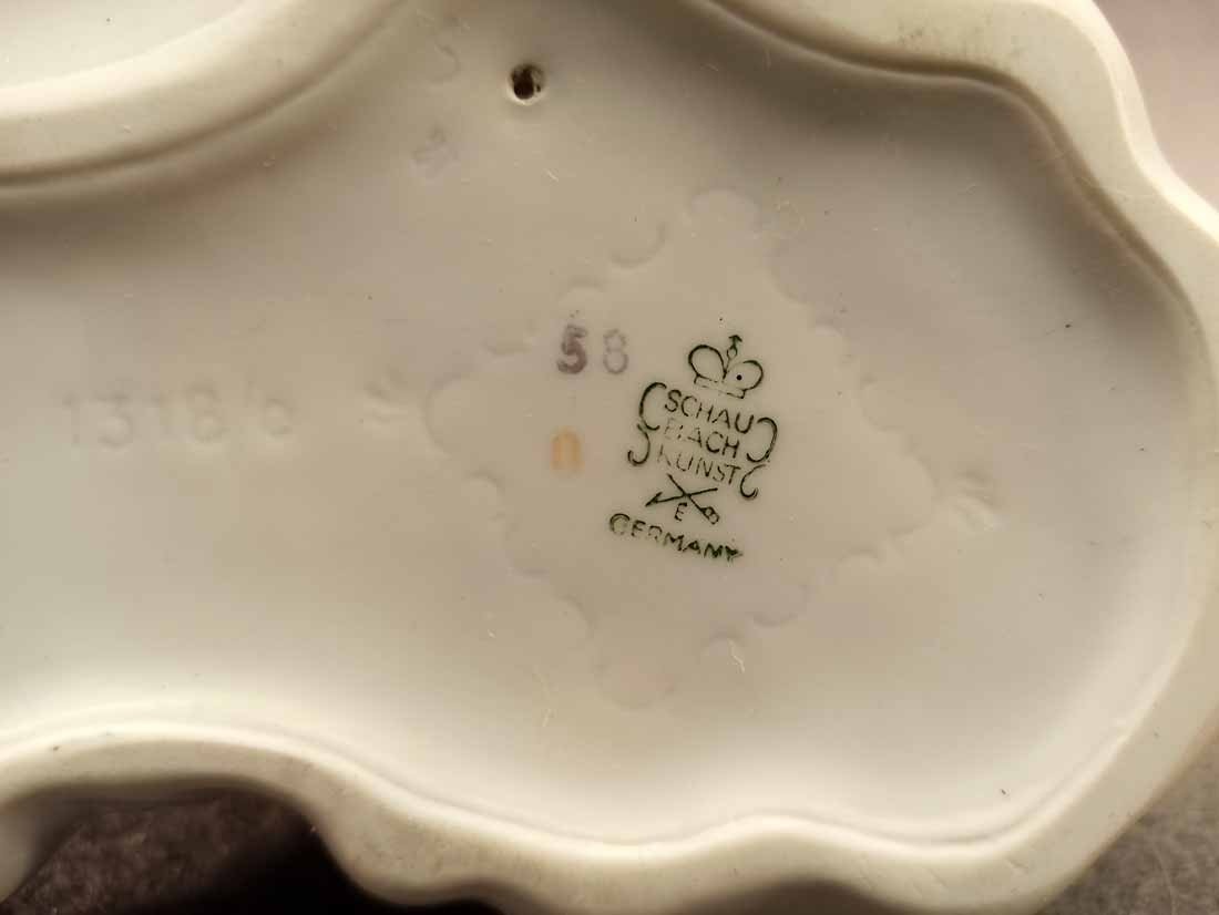 Porzellanfigur "Tänzerin", Schaubachkunst Thüringen aus der Mitte des vorigen Jh. Sehr guter Zustand ohne Beschädigungen. Bodenmarke in Grün, Schaubachkunst und weiter Beimarken. H. ca 18,5 cm