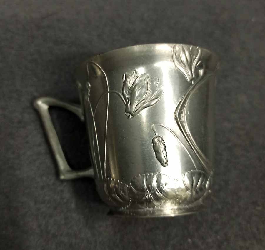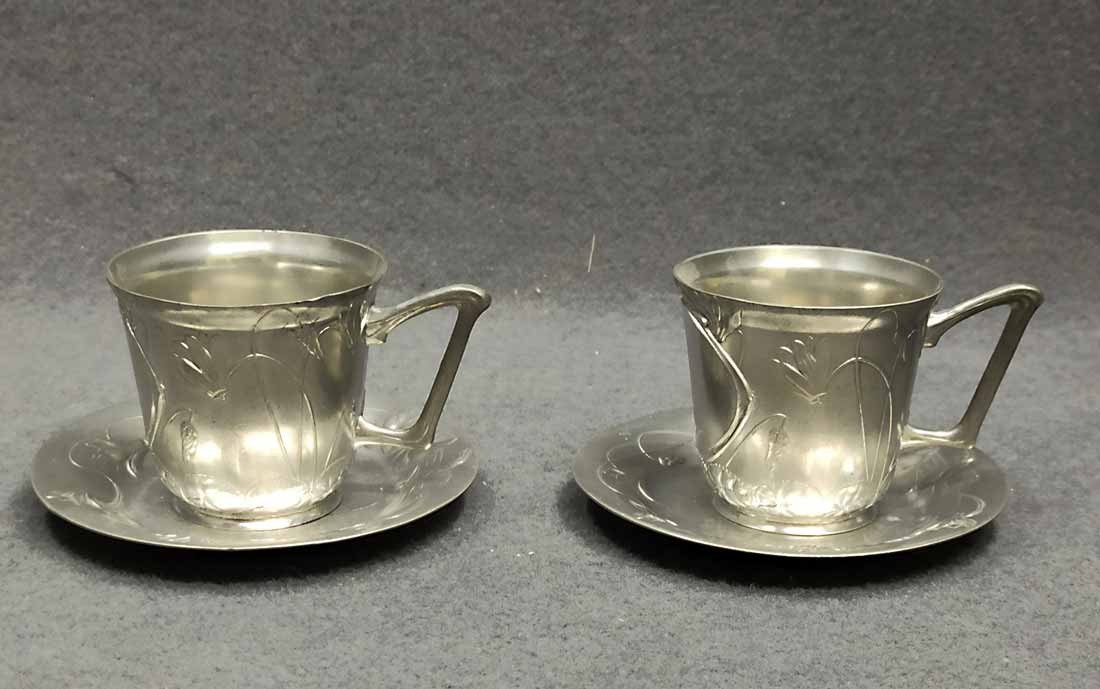 2x Tassen, Jugendstil, Zinn