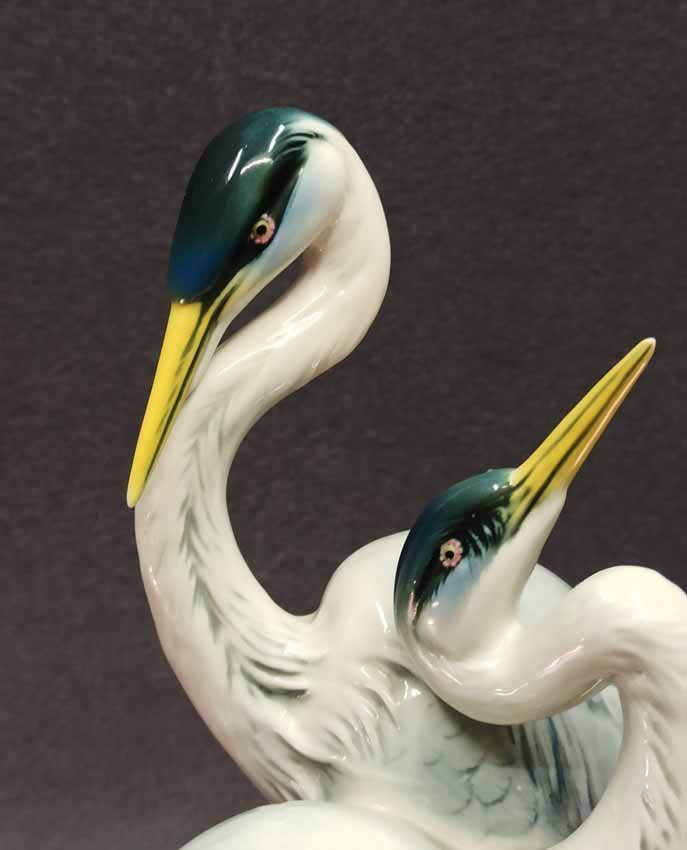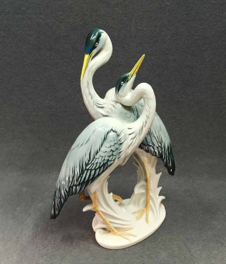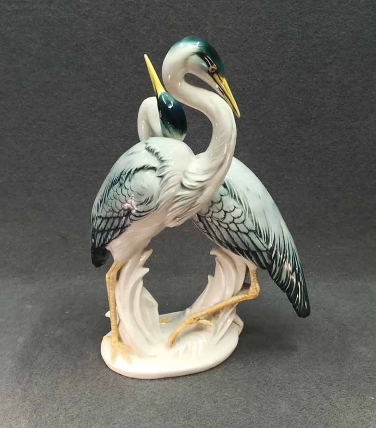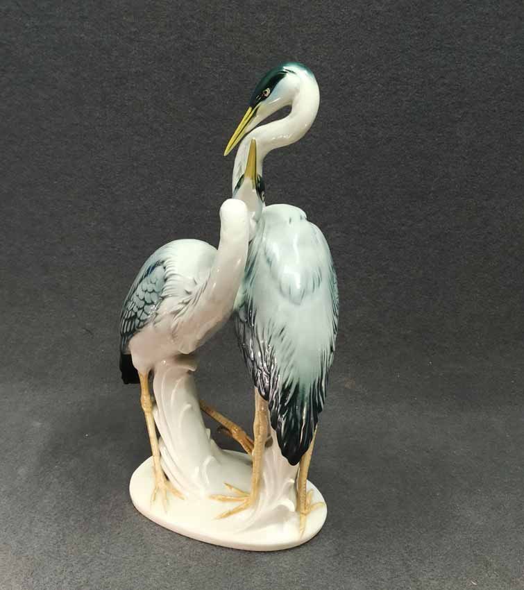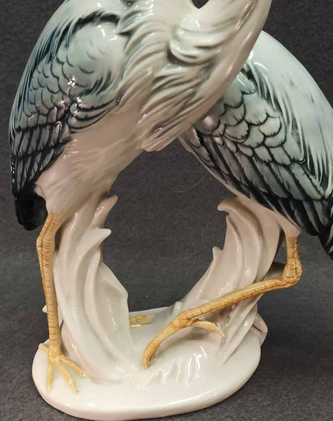 Karl ENS, Thüringen. Große Porzellanplastik Reiher Paar, naturalistische Ausformung. H. ca 31,5 cm. Sehr guter Zustand ohne Beschädigungen. Mühlenmarke von ENS Thüringen.
