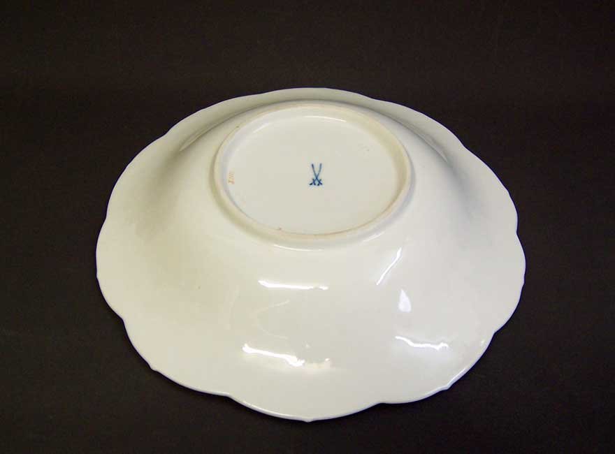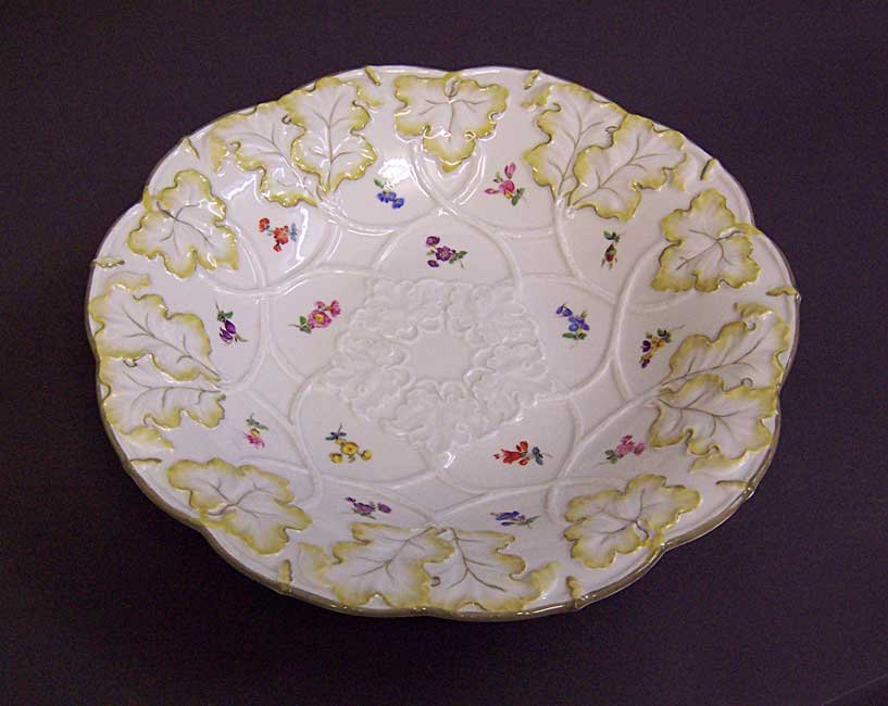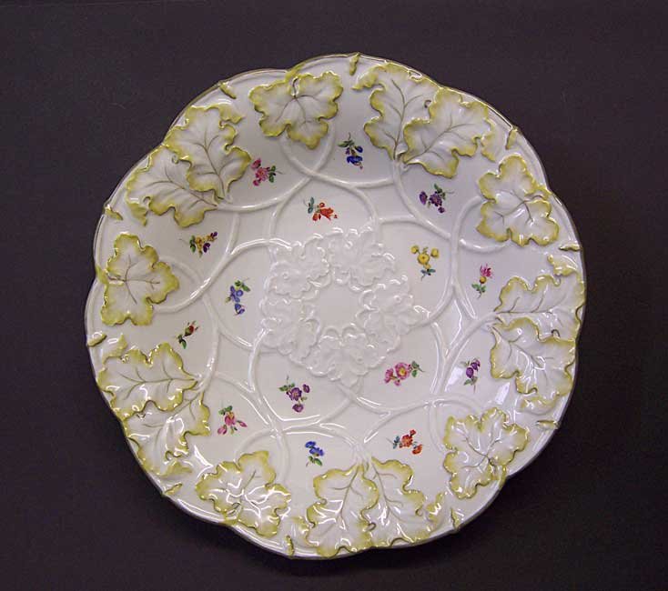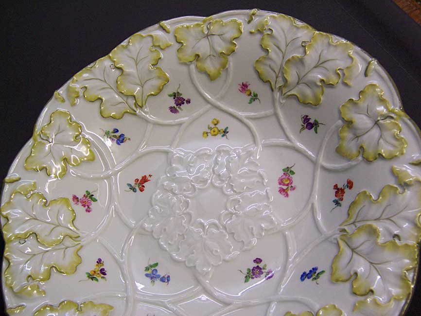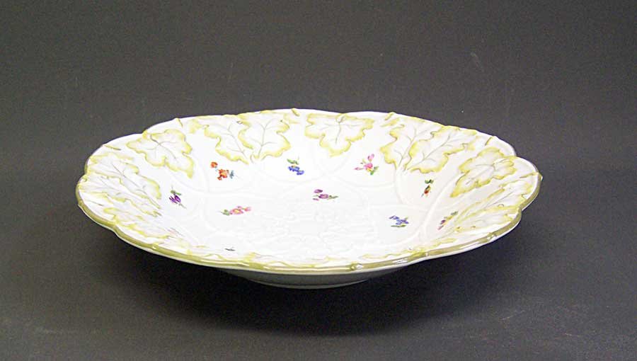 Prunkschale mit (Wein?-) Laub - Reliefdekor und Streublümchen.