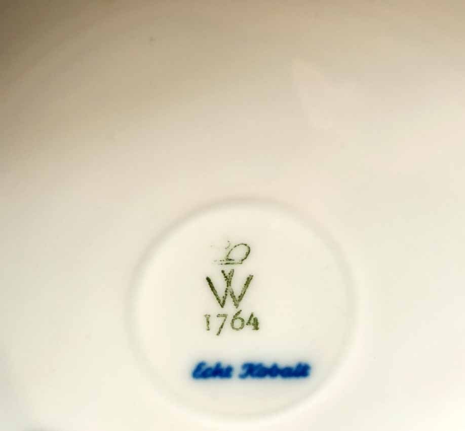 Wallendorf Thüringen, große Vase/Bodenvase. Motiv Pfauenauge, Kobaltblau, H.36 cm. Am Boden gemarkt Manufakturmarke "W" von Wallendorf sowie Beizeichen. Sehr guter Zustand ohne Beschädigungen.