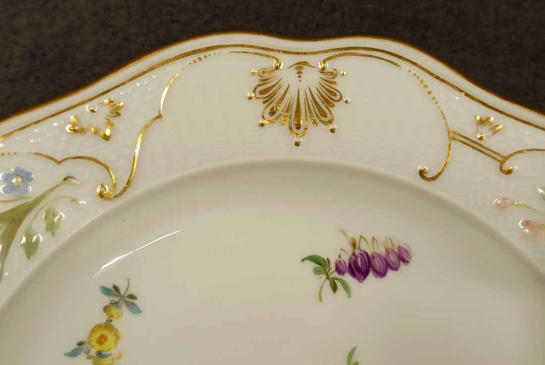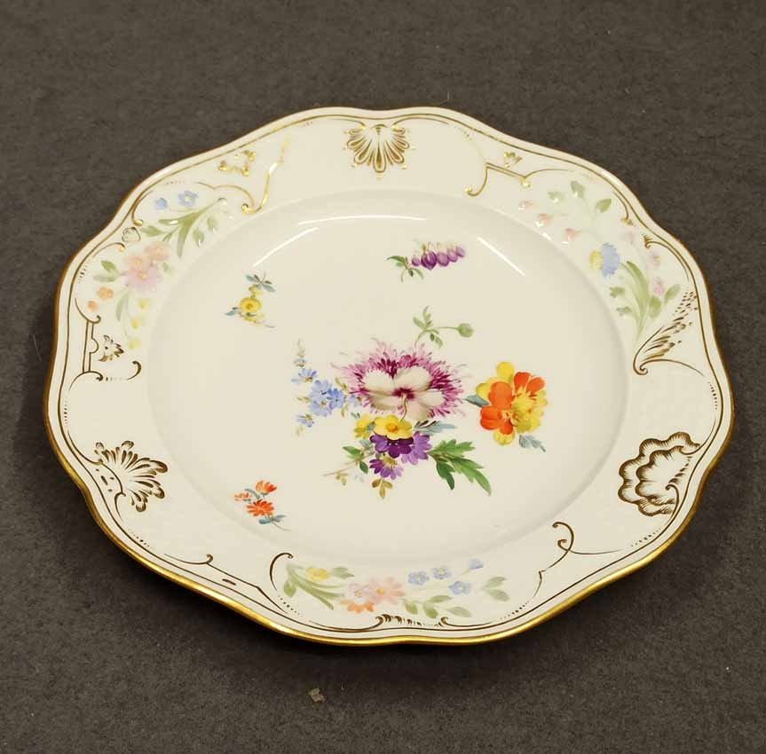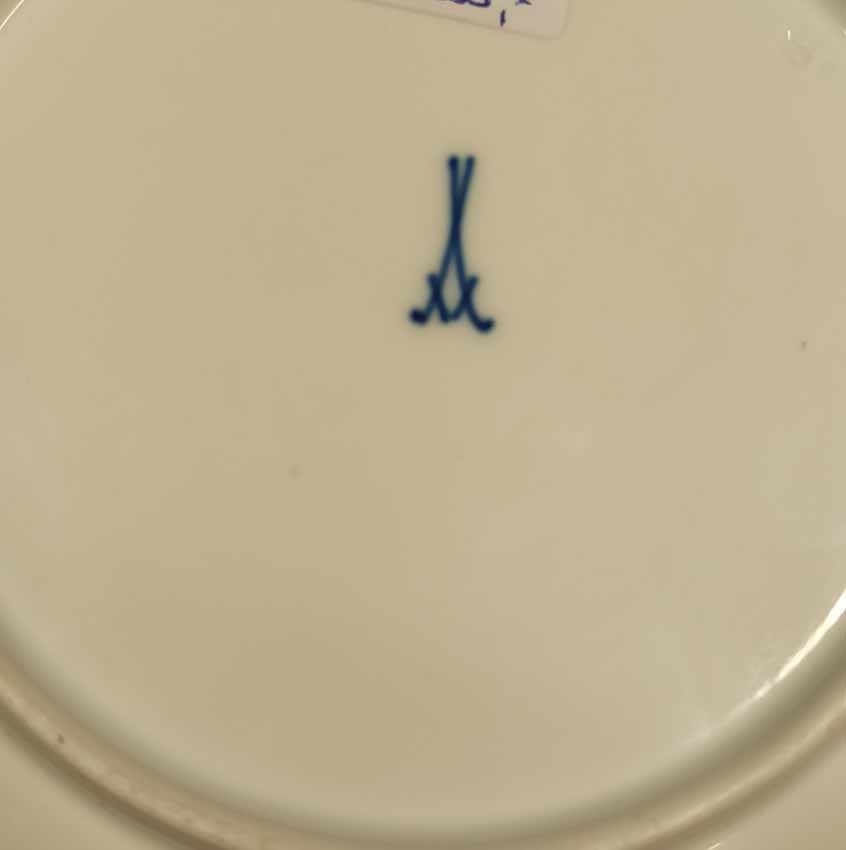 Meissen, Teller 2.H.19.Jh. Blumenmalerei seltene Ausführung, Knaufschwerter 1. Wahl