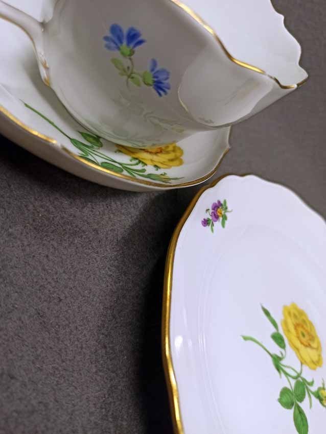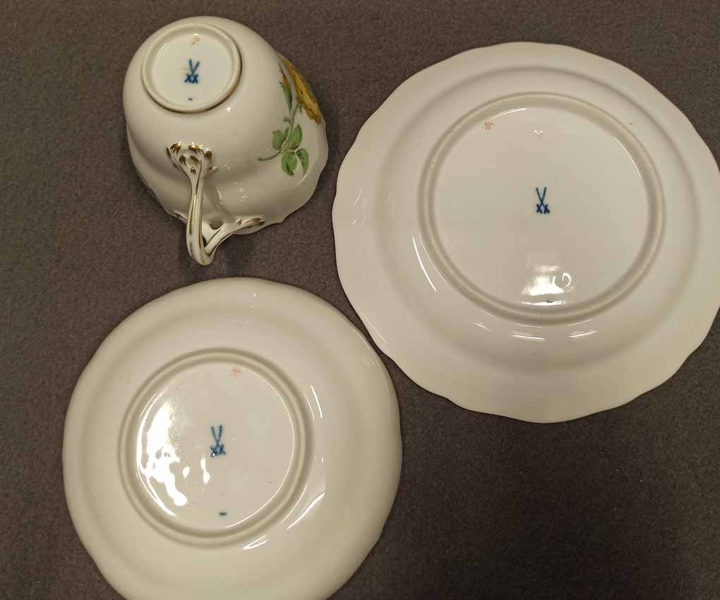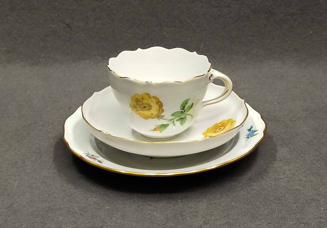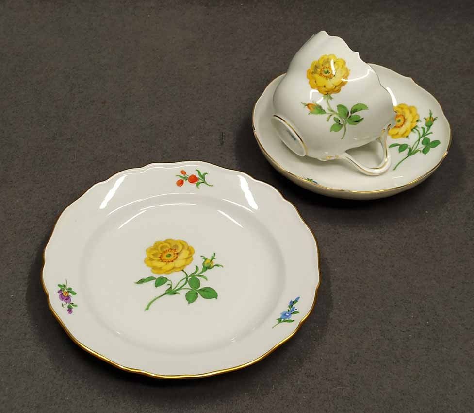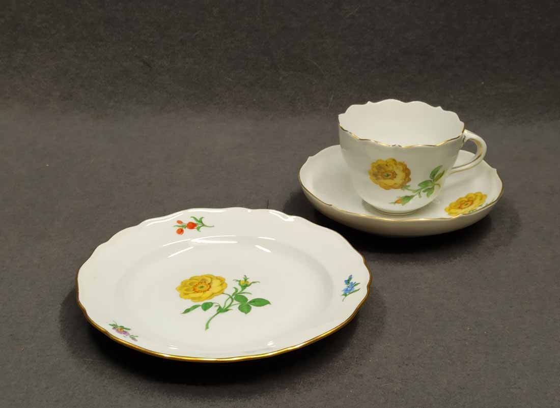 Meissen, Gedeck 3tlg. mit Blumenmalerei