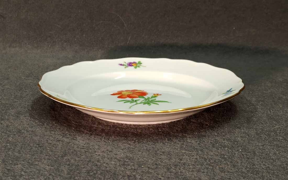 Meissen, Teller mit Blumenmalerei und Goldrand. D. 18 cm. Guter Zustand ohne Beschädigungen. Schwertermarke von Meissen 2x gestrichen.