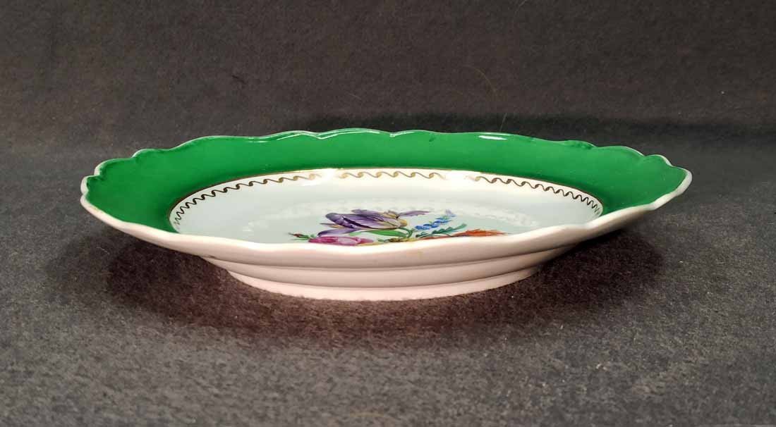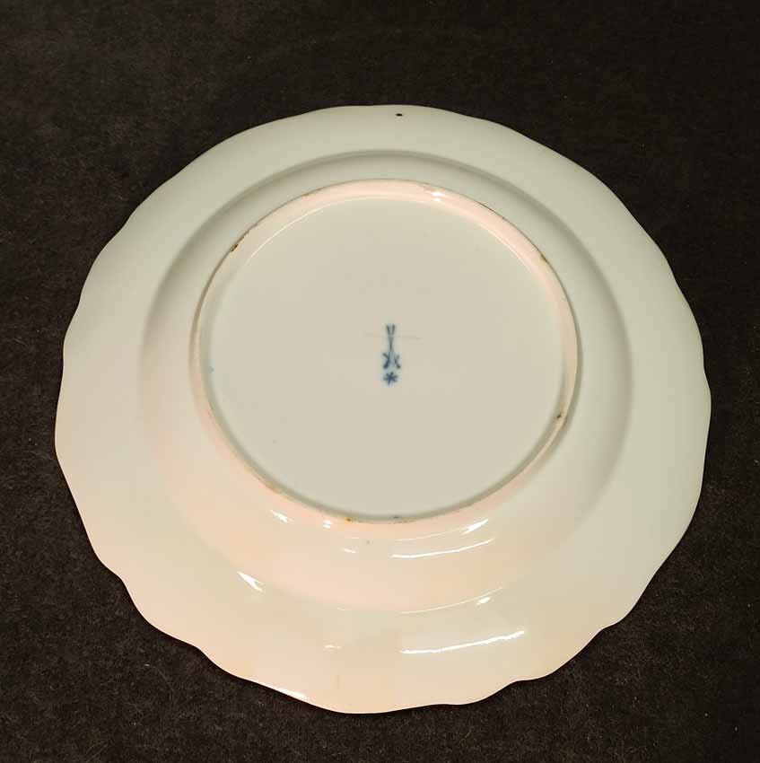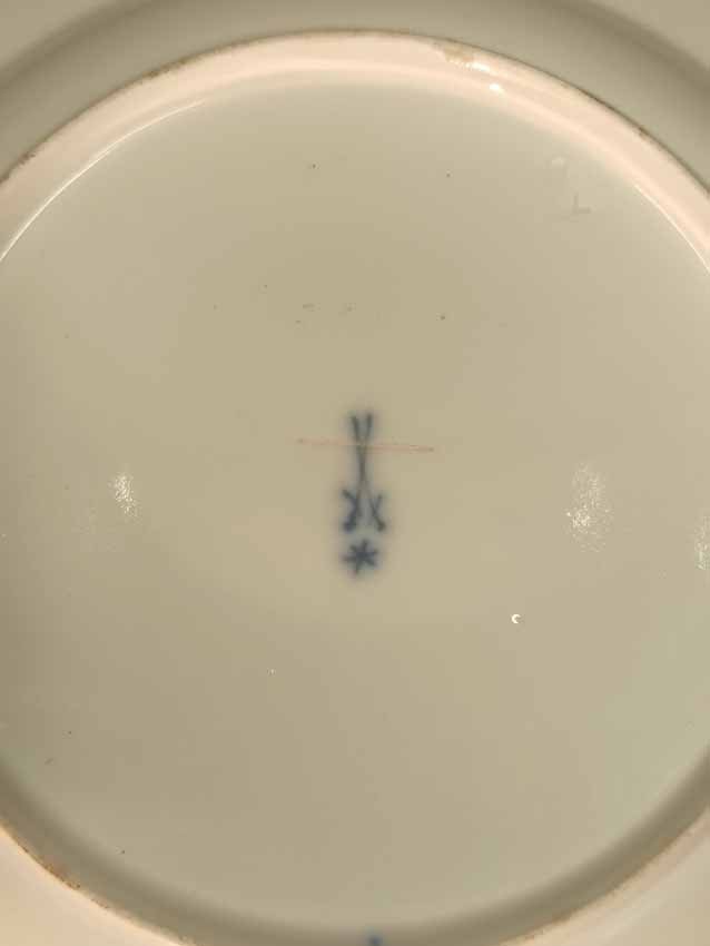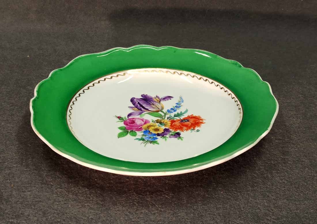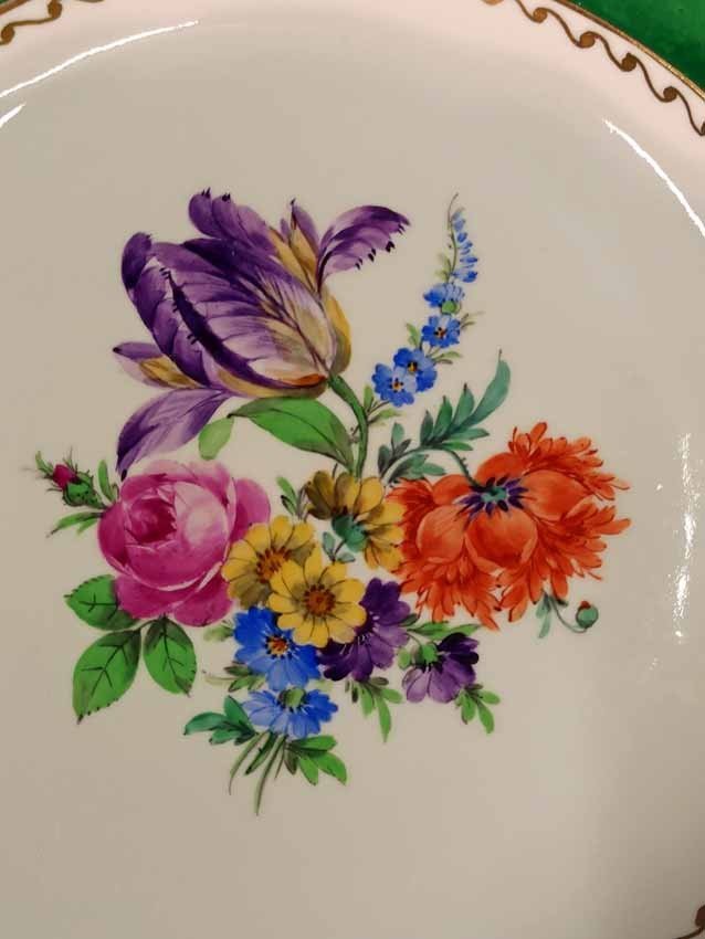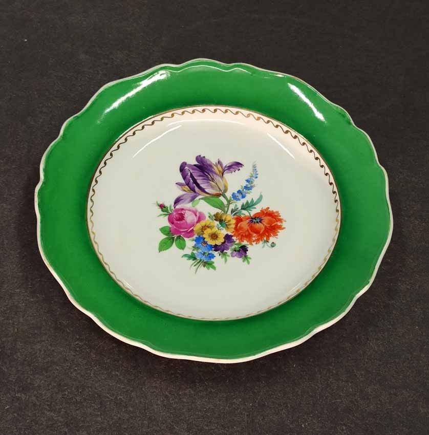 Reserviert! Meissen, Marcolini Teller mit Blumenbukett goldgerahmt und grüner Fahne