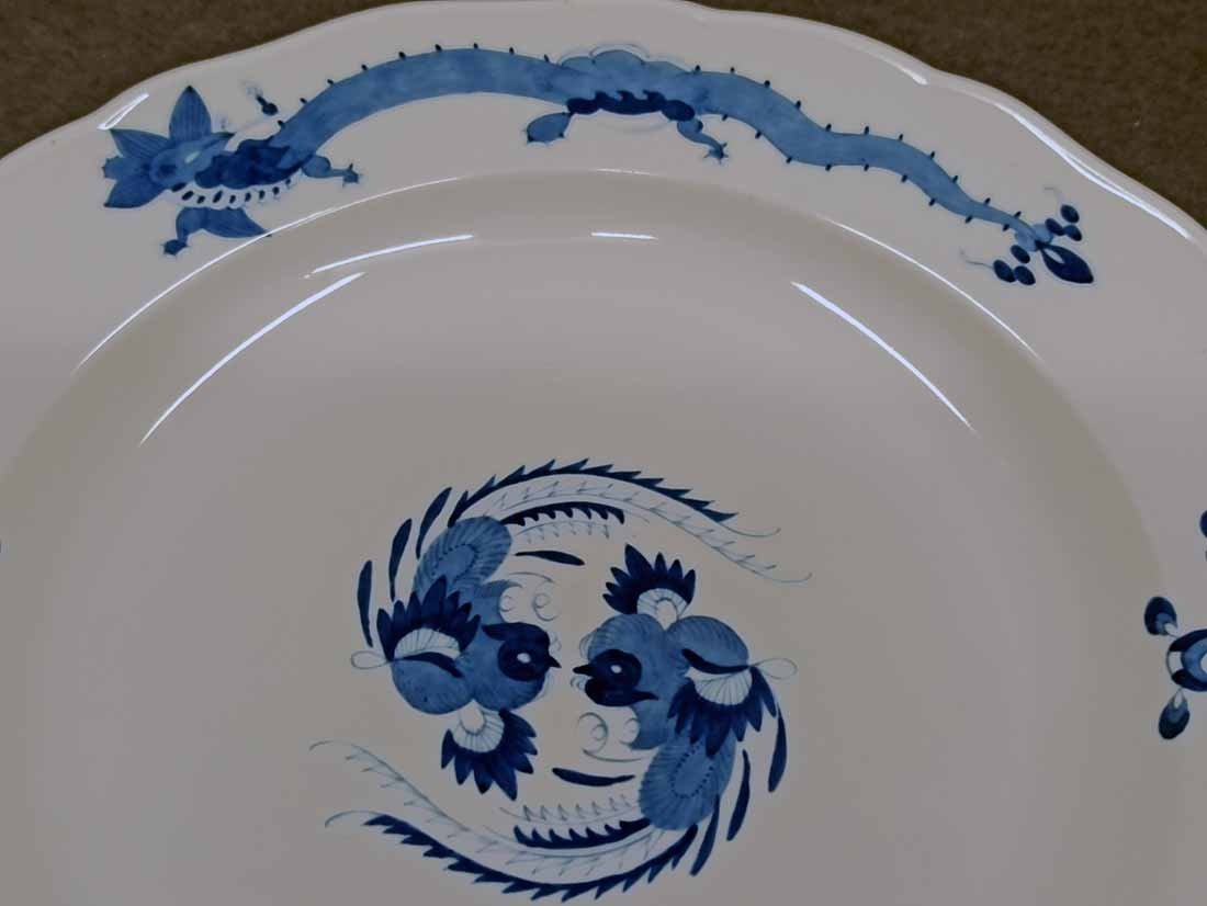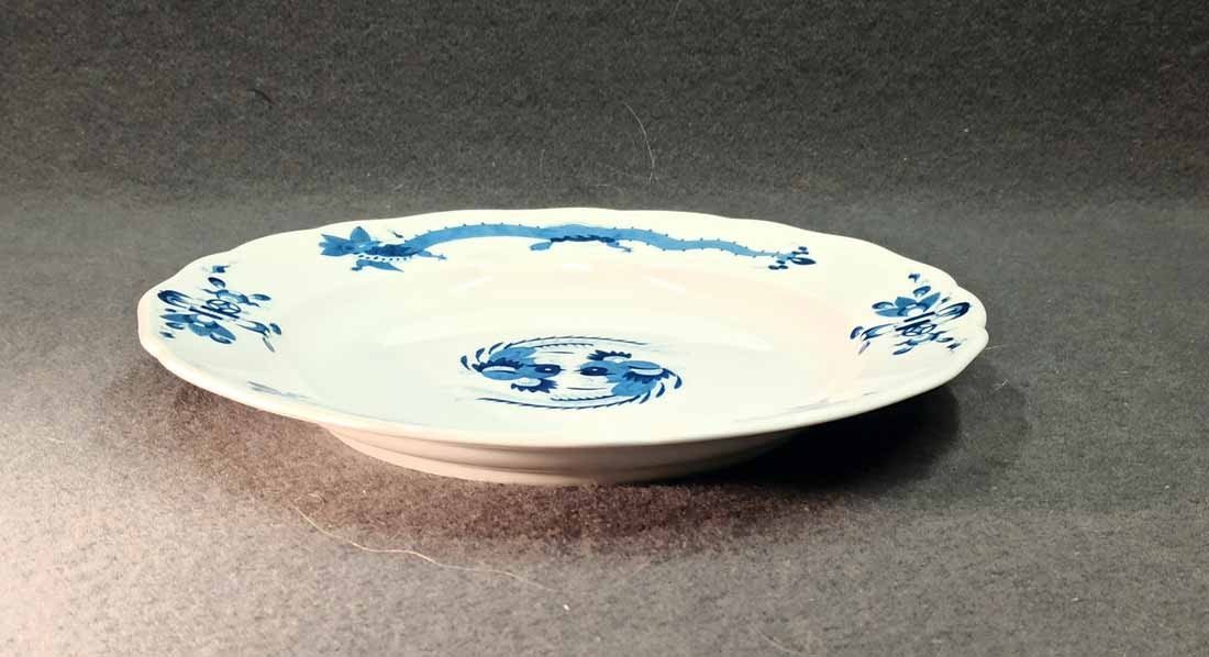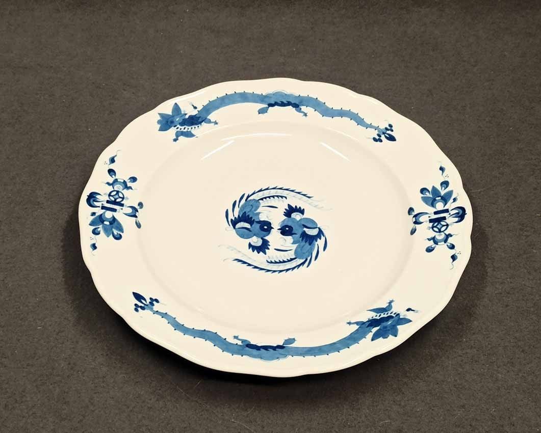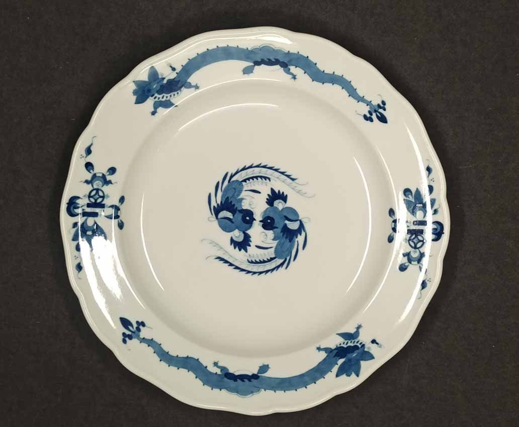 Meissen, Blauer Drache, großer Teller D. 25,3 cm, H. 3 cm. Ohne Gold. Guter Zustand ohne Beschädigungen, Malerei i.O. Schwertermarke der manufaktur Meissen 2x gestrichen, gekreutzt.