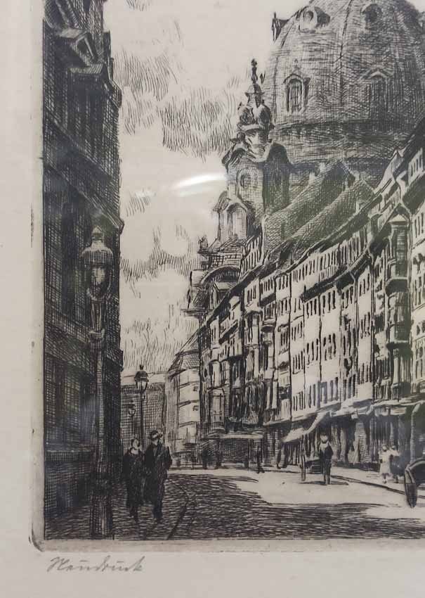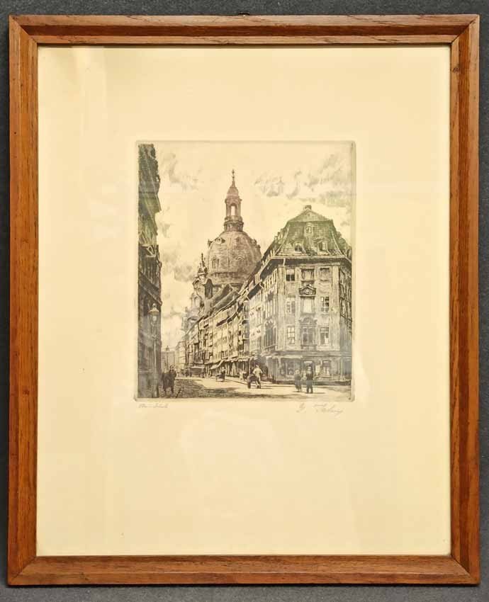 Reserviert! Georg Jahn, "Dresden mit Frauenkirche", Radierung. Seltener Blick auf die Frauenkirche mit Personenstaffage. Re.u. sign. "G. Jahn". B. 18,5/38 cm, H. 22/46 cm.