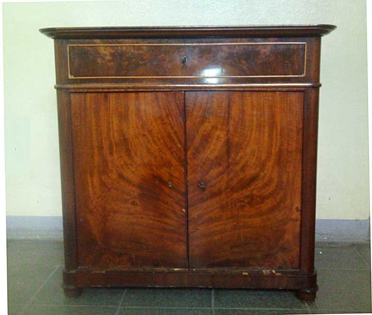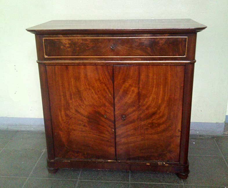 Guter Zustand mit etwas Restaurierungsbedarf; Furnierfehlstellen und kleine Holzdefekte.