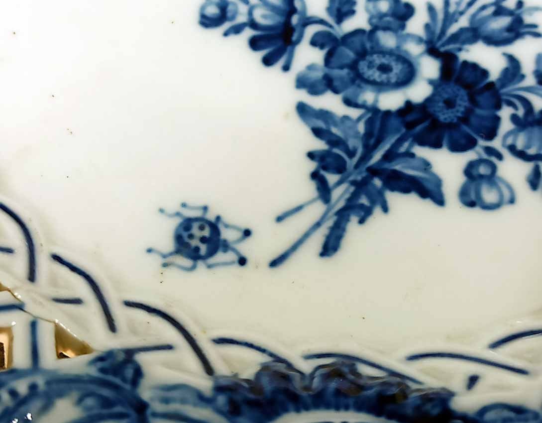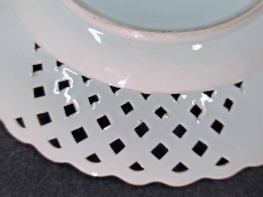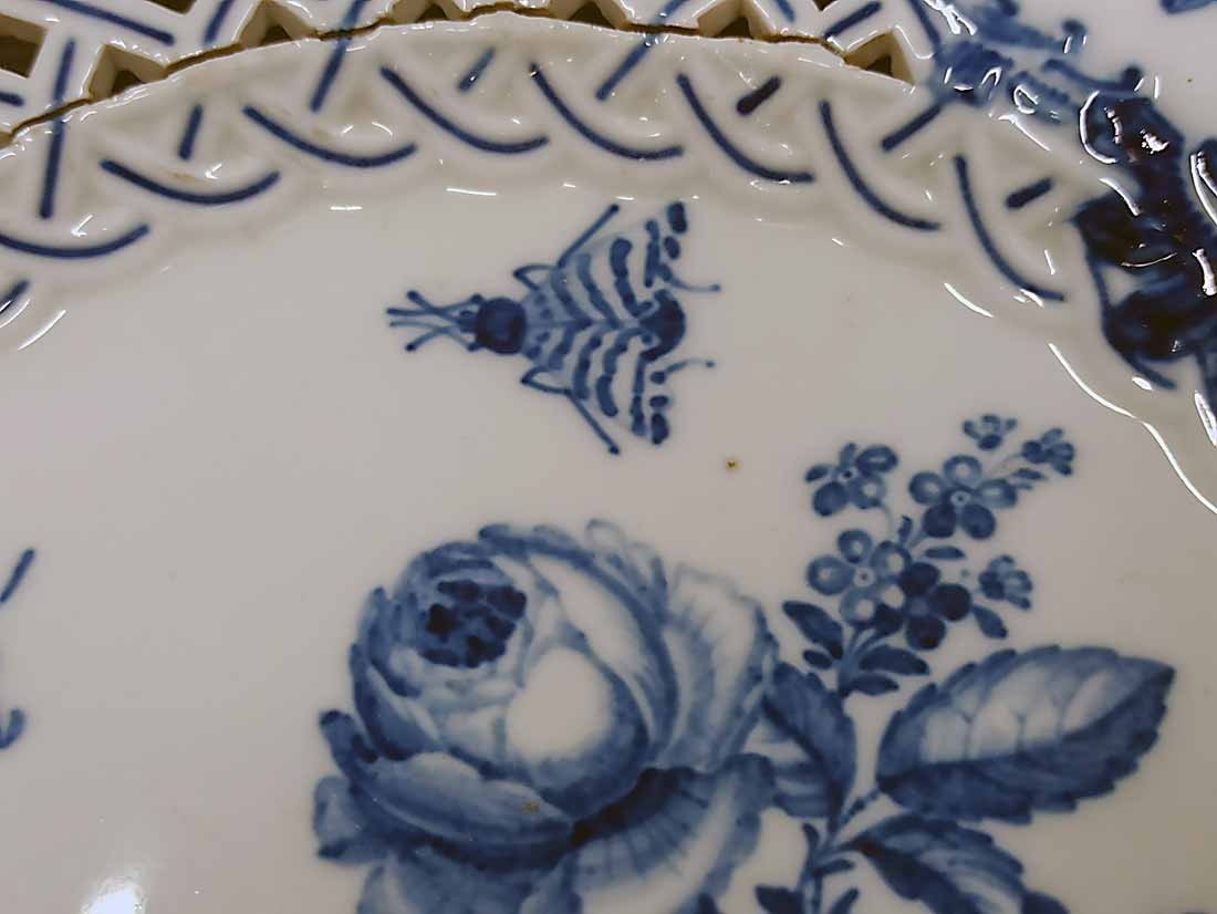 Reserviert! Meissen um 1850, Teller Insekten und Blumen, Flechtrand, Blaumalerei