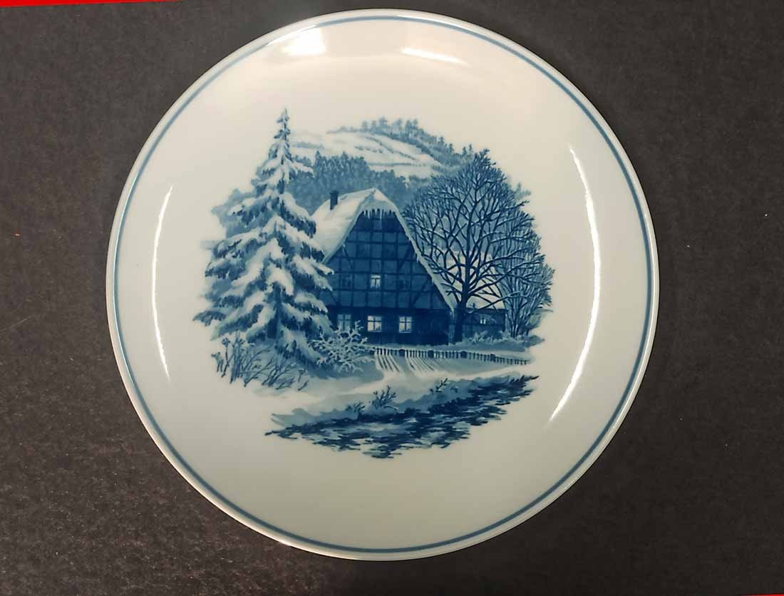Meissen, Bildteller Winterlandschaft mit Haus, Wandteller D. 26 cm, 1. Wahl