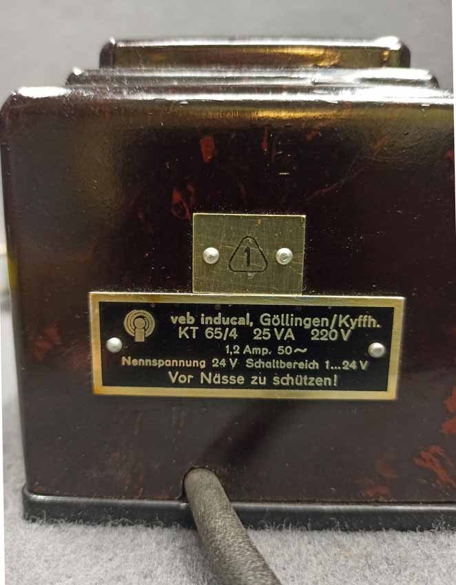 Trafo Bakelit, 50er-60er Jahre DDR, KT 65/4, VEB Inducal, Göllingen. Schaltbereich 1 bis 24 V. Funktionstüchtig