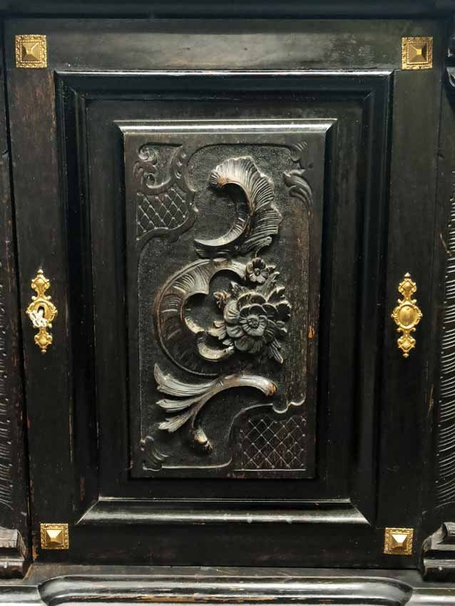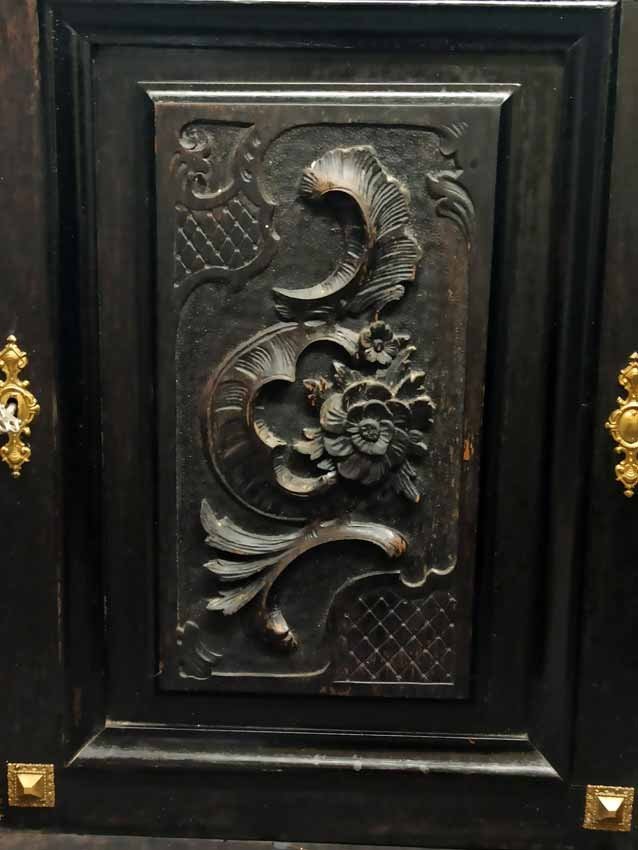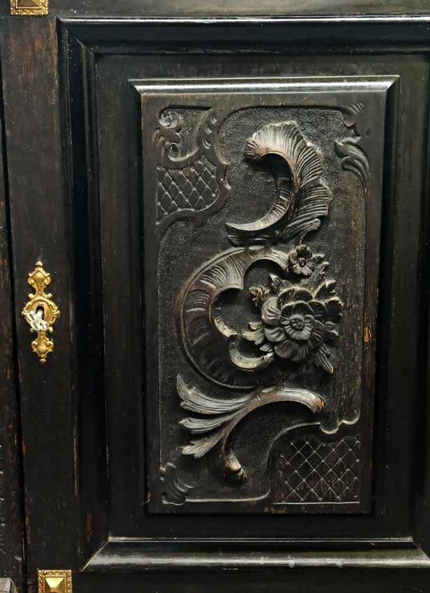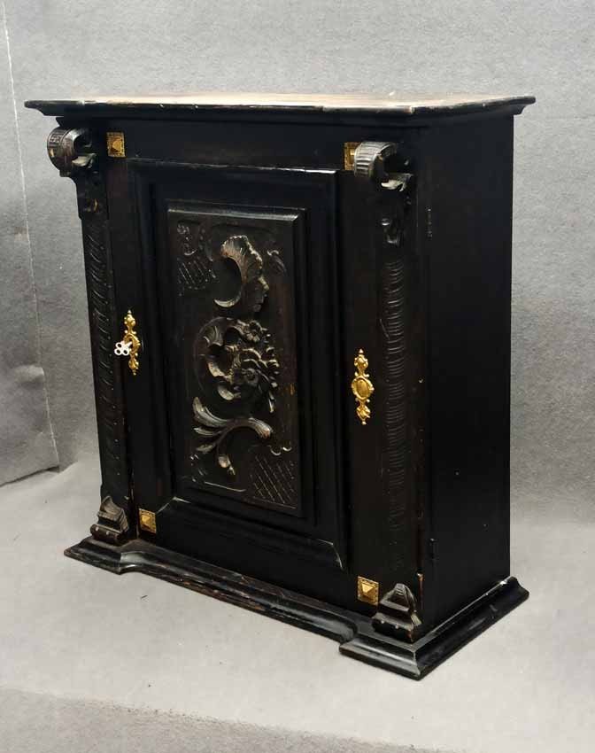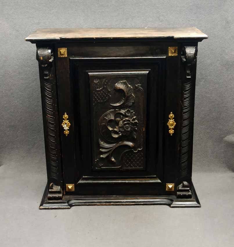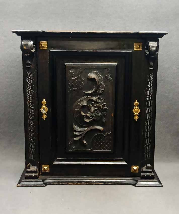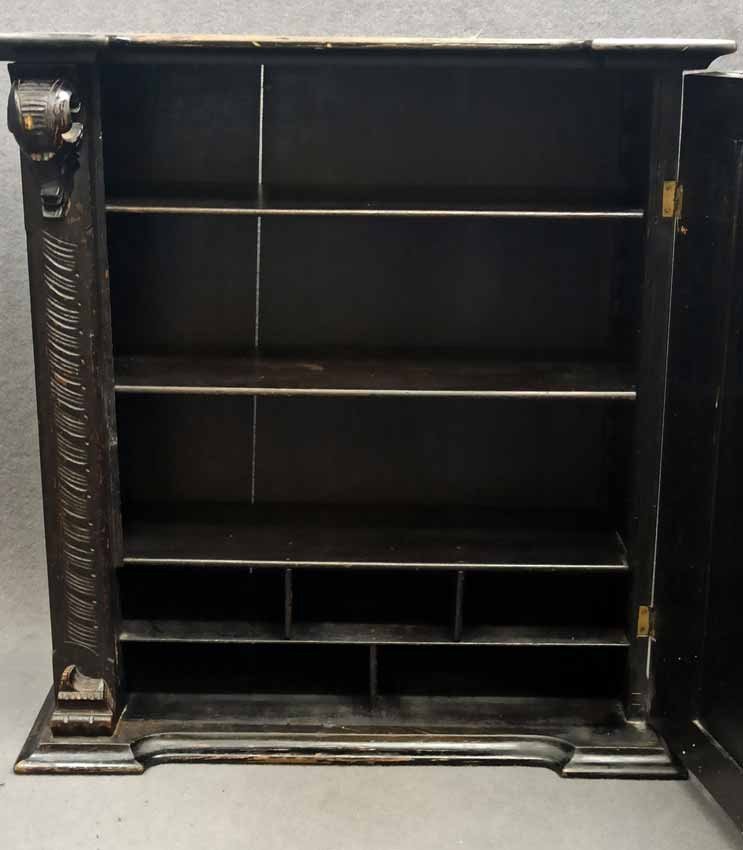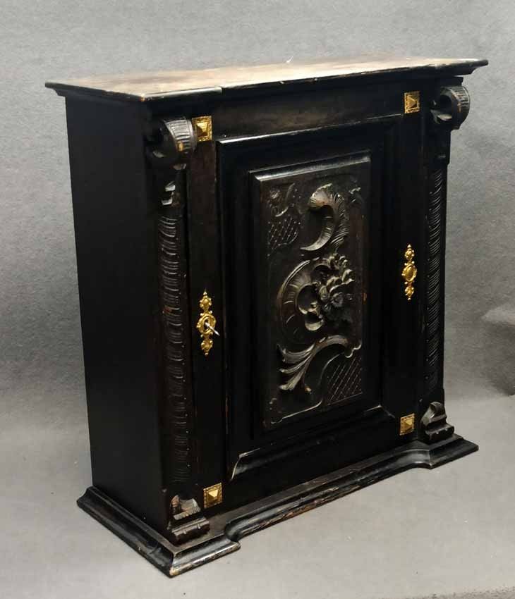 Wandschrank, Gründerzeit um 1880. Guter Zustand, innen mit Einteilung und Einlegebrettern, Schloss i.O. H. 54 cm, B. 51 cm, T. 22 cm.