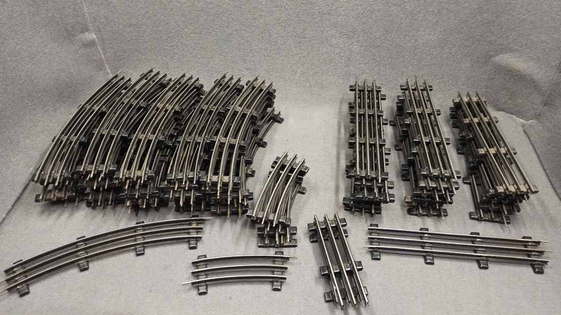 Zeuke, Konvolut Gleismaterial, 47 Teile Spur 0, elektrisch 3-Gleis, DDR 60er Jahre, guter Zustand.