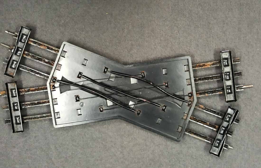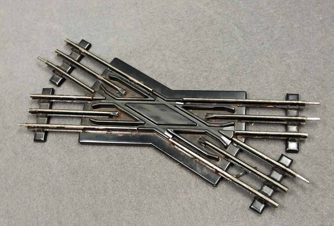 Zeuke, Kreuzung, Spur 0, elektrisch für  3-Gleis , DDR 60er Jahre. Guter Zustand, funktioniert, immer vorsichtig bespielt.