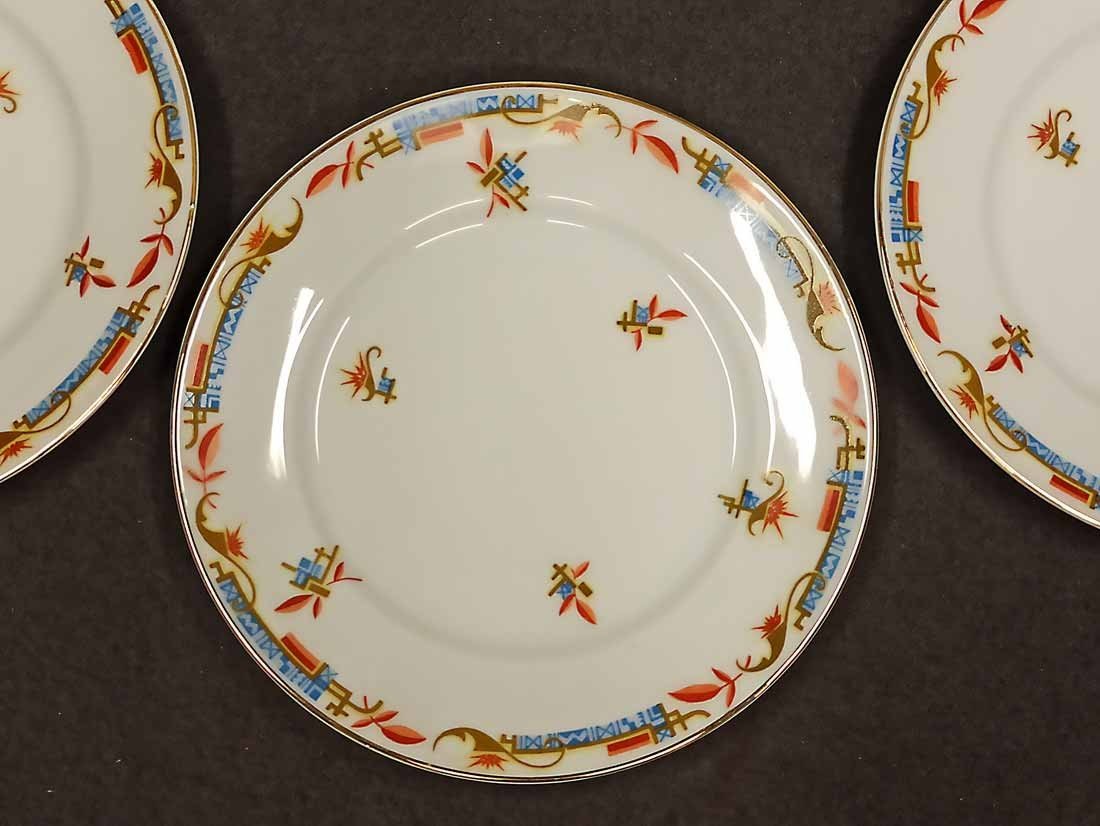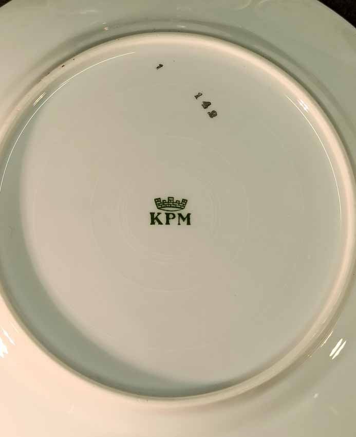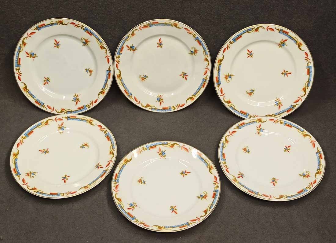 KPM (verm. Schlesien/Silesia) Art Deco, sechs flache Teller D. 19 cm. Ohne Beschädigungen. Gemarkt KPM unter Krone.