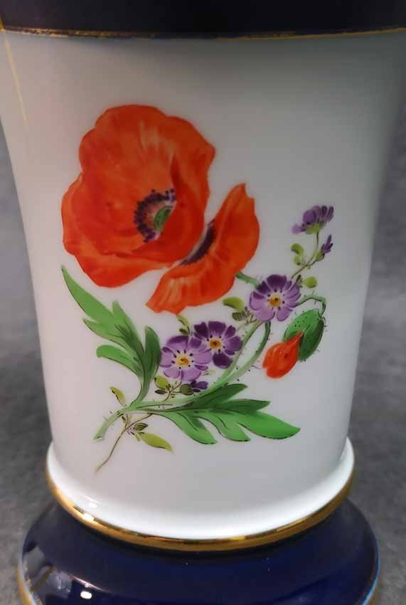 Meissen, Vase mit Kobaltblau und Gold, Blumenmalerei