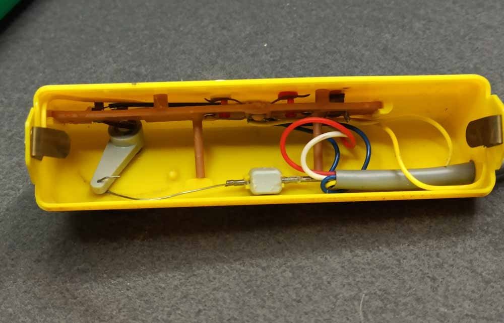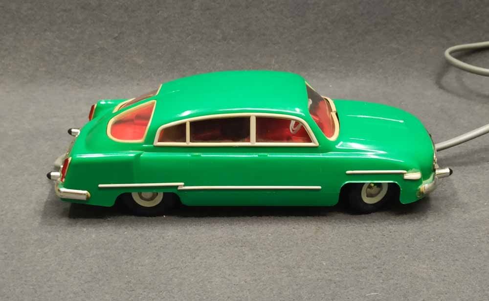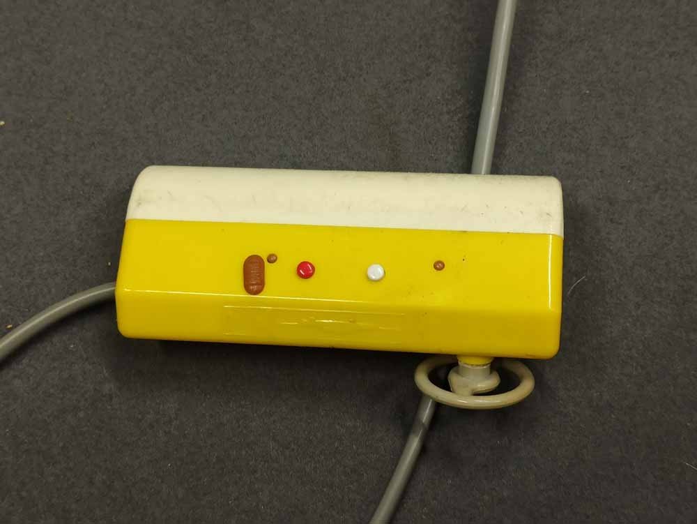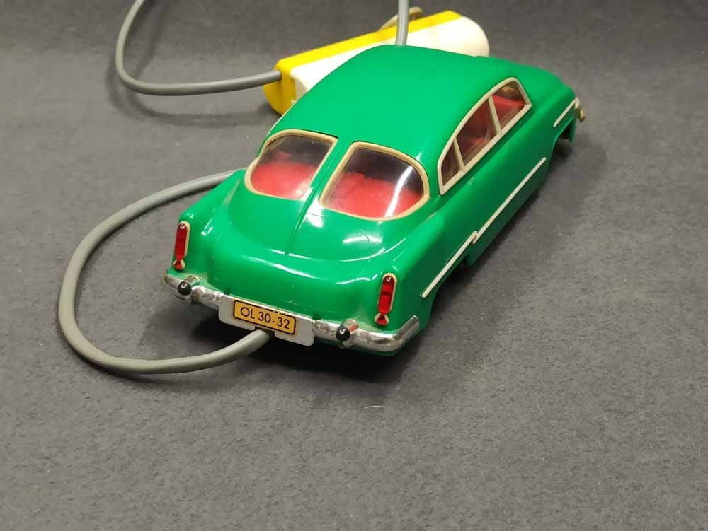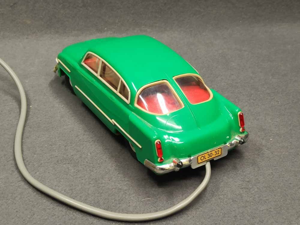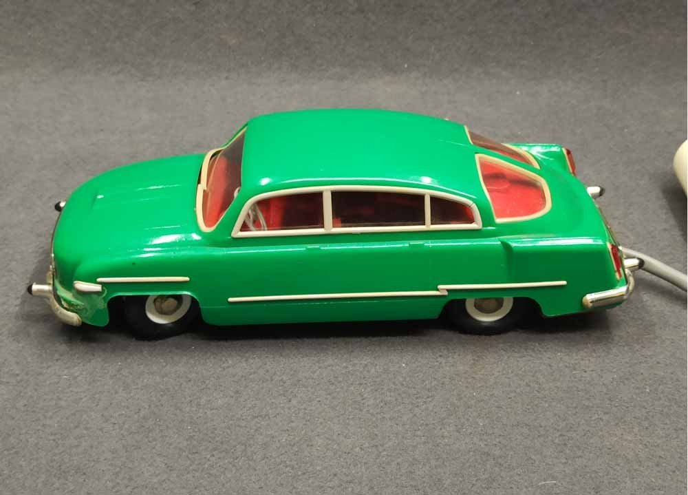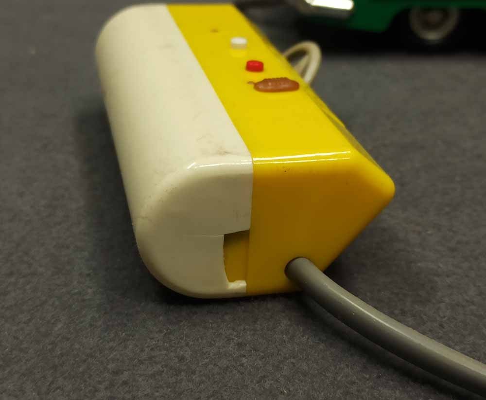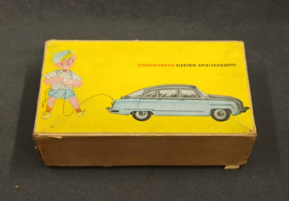 Ferngesteuerter Tatra in Original Verpackung. DDR Spielzeug vermutl. PRESU (Press- und Spritzwerk Suhl). Guter Zustand bespielt mit normalen Gebrauchsspuren, kleine Kratzer, leichte Verfärbung etc. Kleiner Ausbruch am Gehäuse der Fernbedienung, Stoßstange seitl. etwas gelöst. Fahrfunktion Vor+Zurück funktioniert, Lenkung prinzipiell i.O. geht schwer, Beleuchtung dz. ohne Funktion. Verpackung mit Nutzungsmängeln.