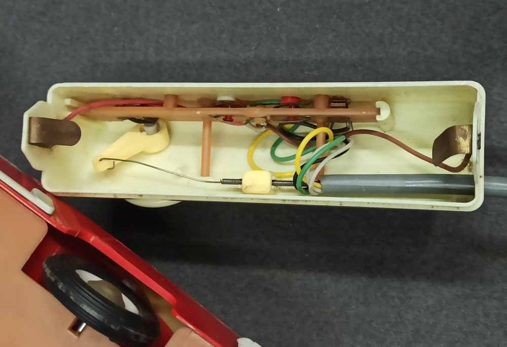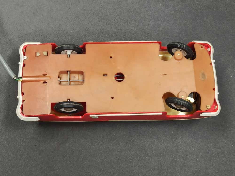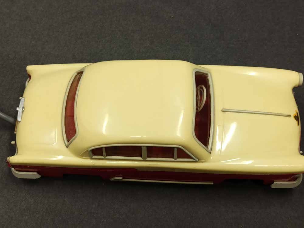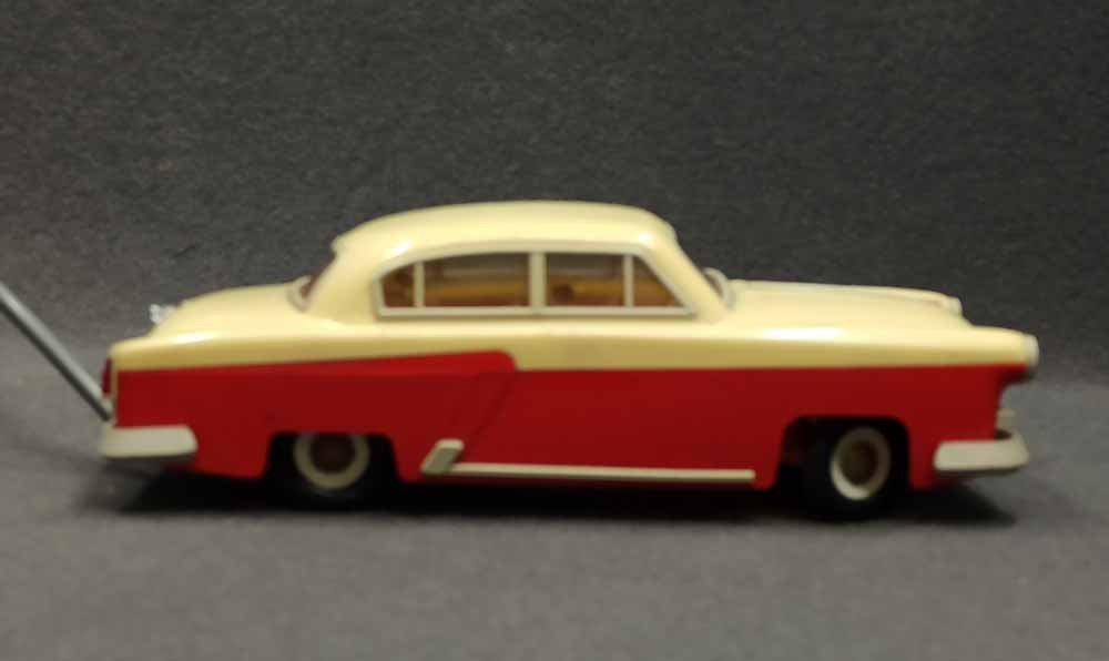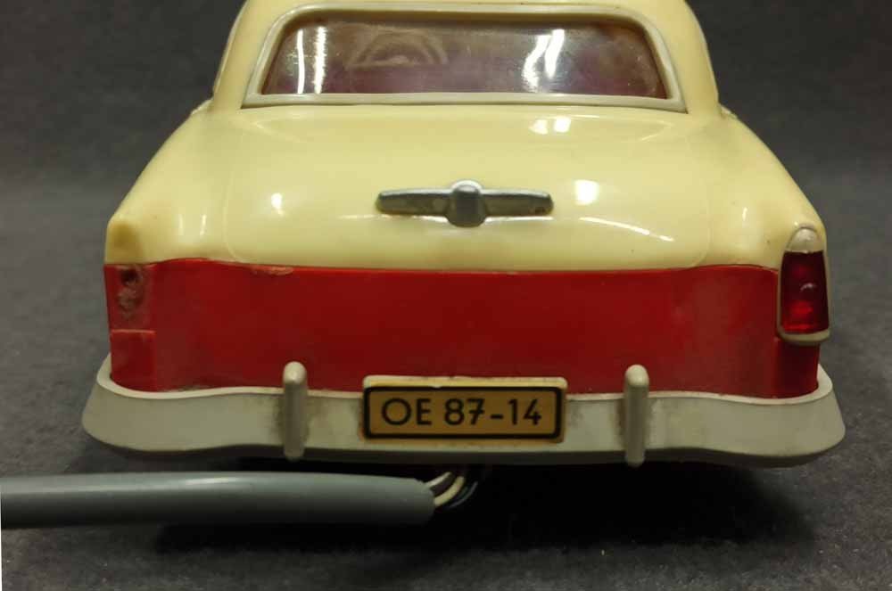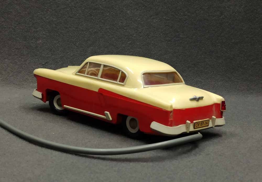 Ferngesteuerter Wolga. DDR Spielzeug vermutl. PRESU (Press- und Spritzwerk Suhl). Guter Zustand bespielt mit normalen Gebrauchsspuren, kleine Kratzer, leichte Verfärbung etc. Fahrfunktion Vor+Zurück funktioniert, Lenkung prinzipiell i.O. geht schwer, Beleuchtung einseitig i.O.