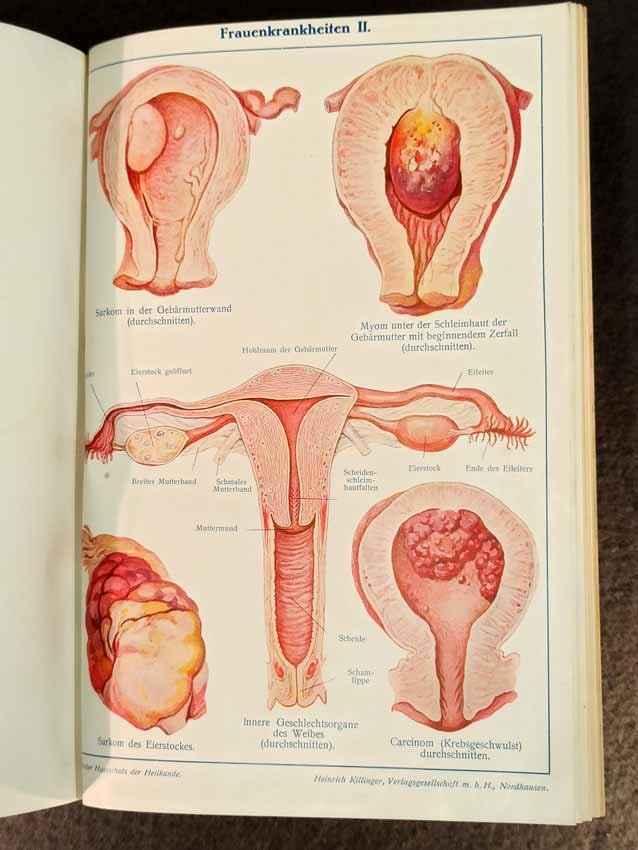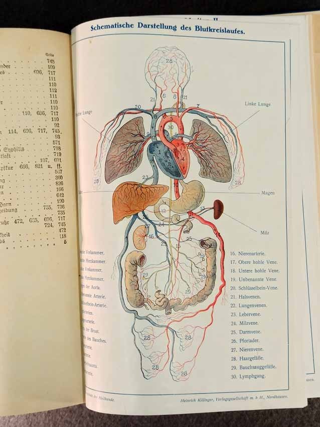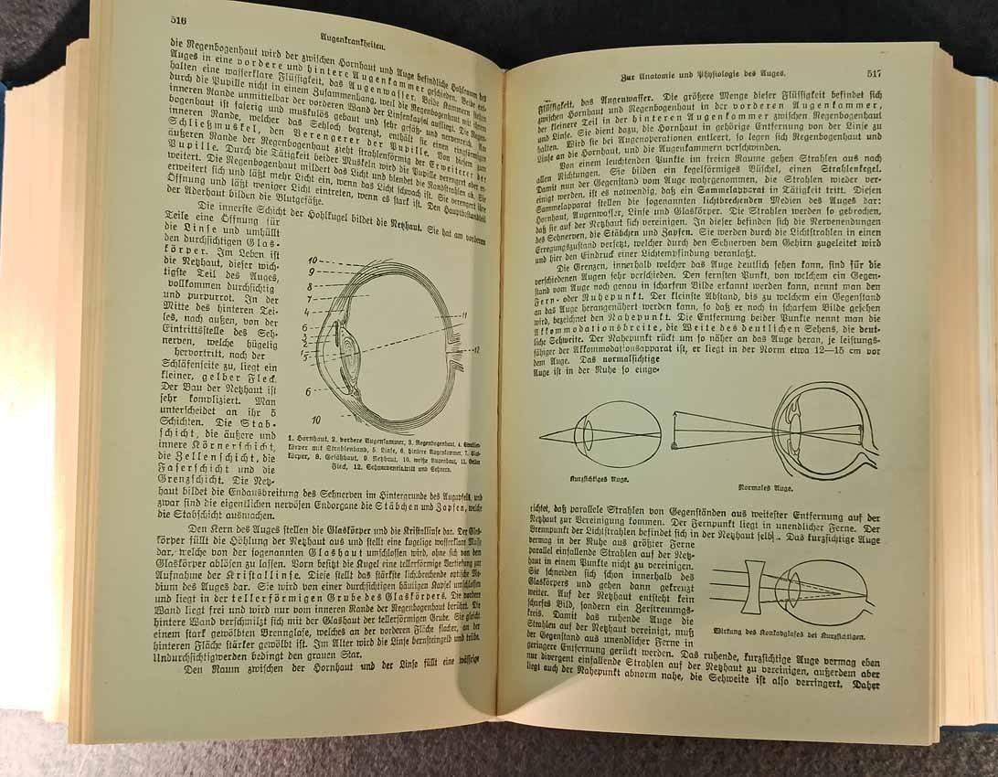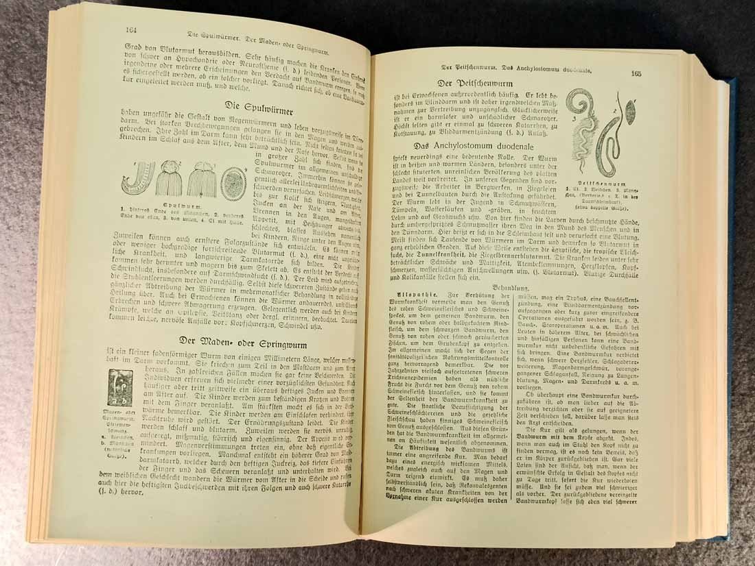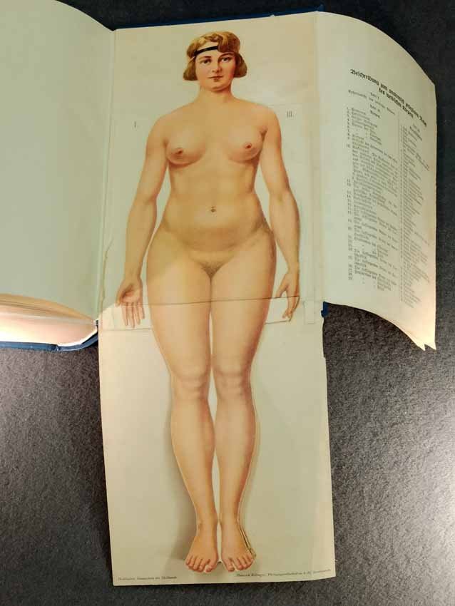 900 Seite mit vielen Abbildungen, 24 Farbtafeln, 31 Tafeln, 2 zerlegbaren Körpermodellen und Rezepten