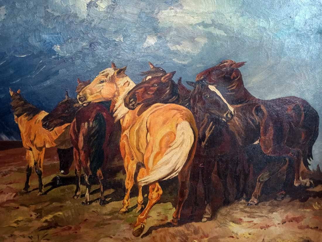 Reserviert! Pferde im Gewitter, Kopie nach Alfred Roloff, Öl/Lwd.