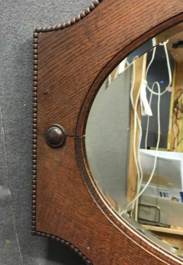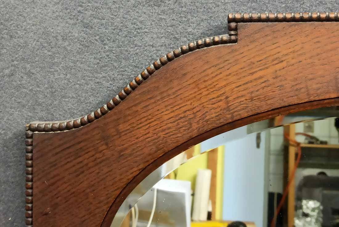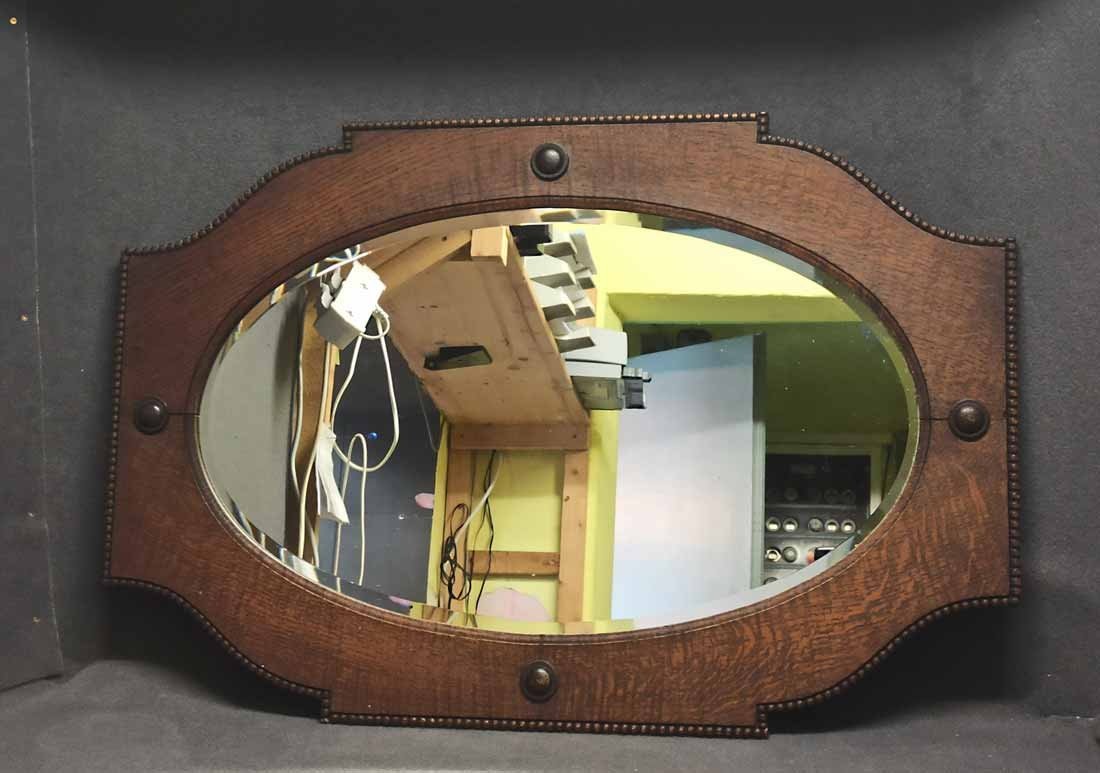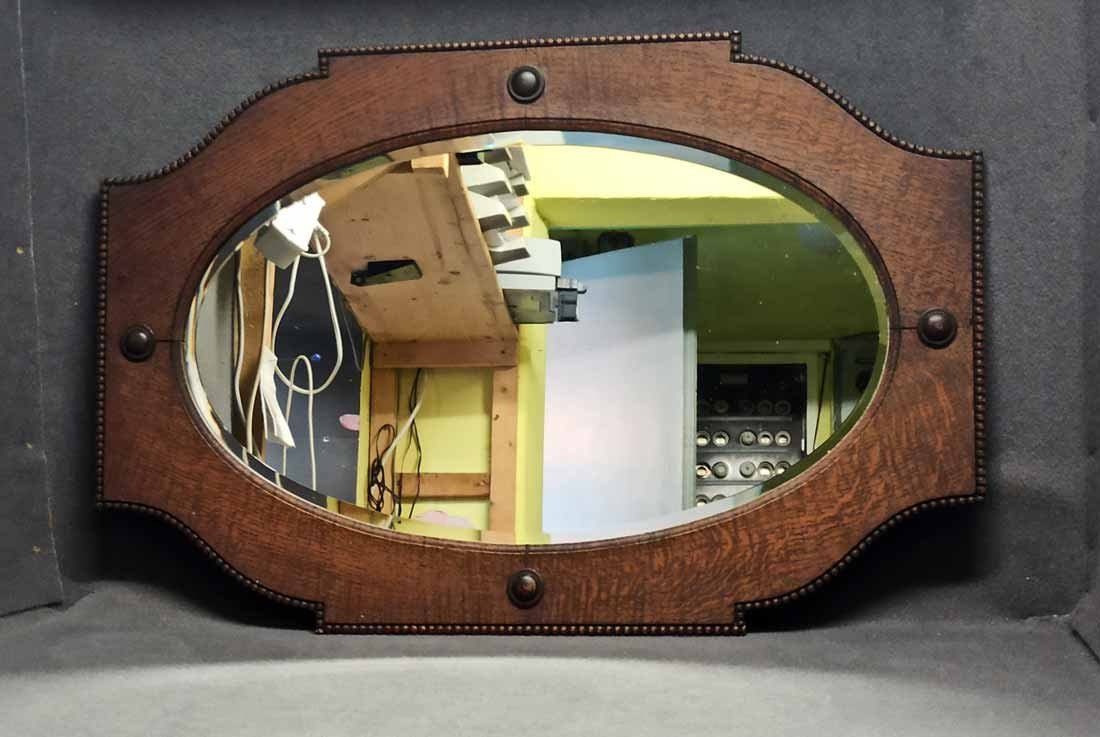 Spiegel um 1910. Holzrahmen mit original Spiegelglas, dieses facettiert. Holzrahmen mit Perlleiste. Sehr guter mit geringen Gebrauchsspuren. B. x H. 80 cm x 54 cm, Rahmen 8 cm.