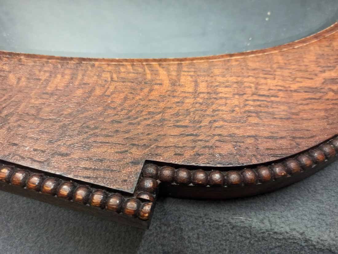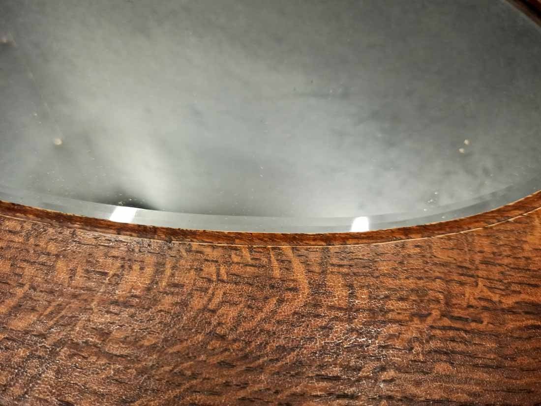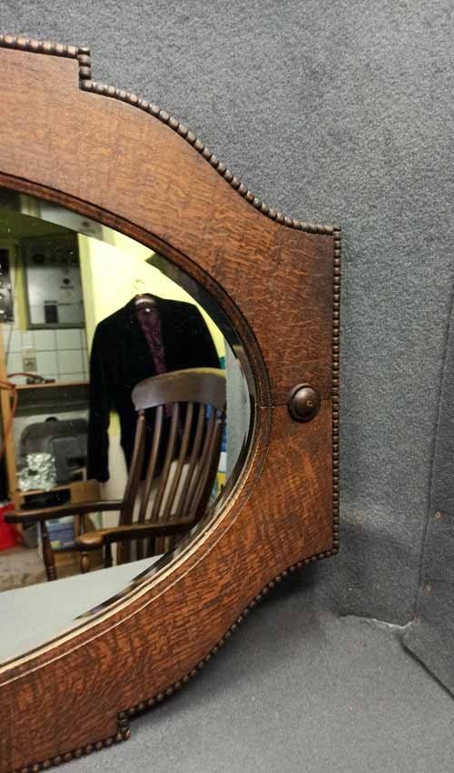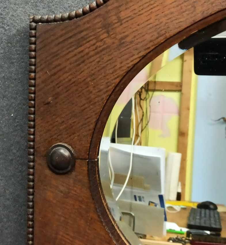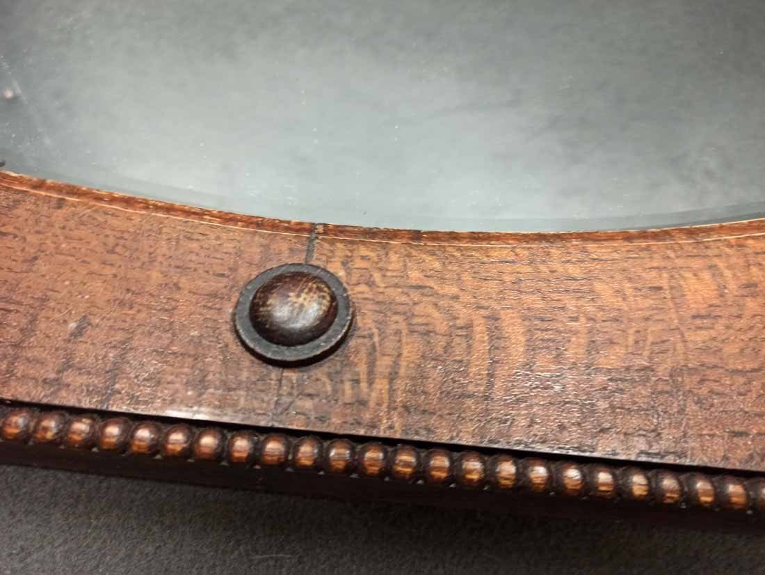 Spiegel um 1910. Holzrahmen mit original Spiegelglas, dieses facettiert. Holzrahmen mit Perlleiste. Sehr guter mit geringen Gebrauchsspuren. B. x H. 80 cm x 54 cm, Rahmen 8 cm.