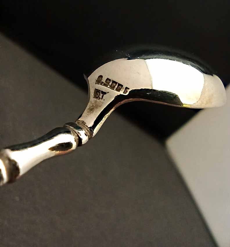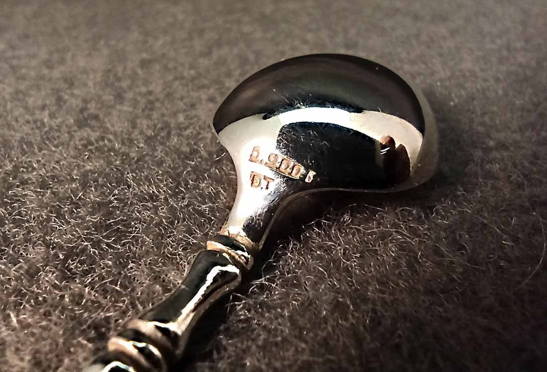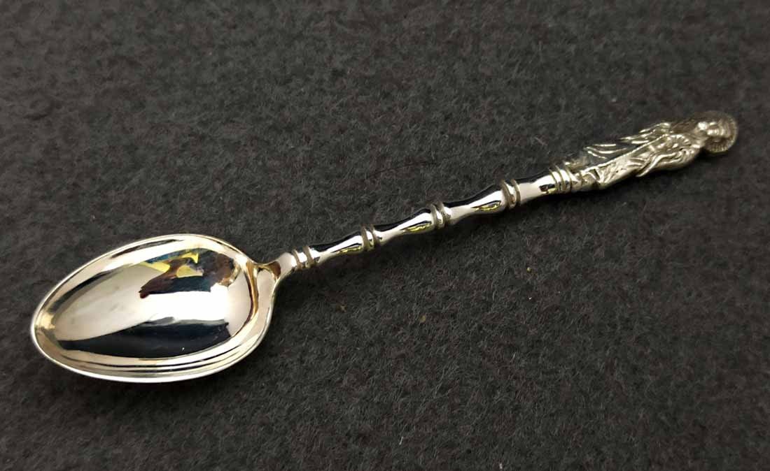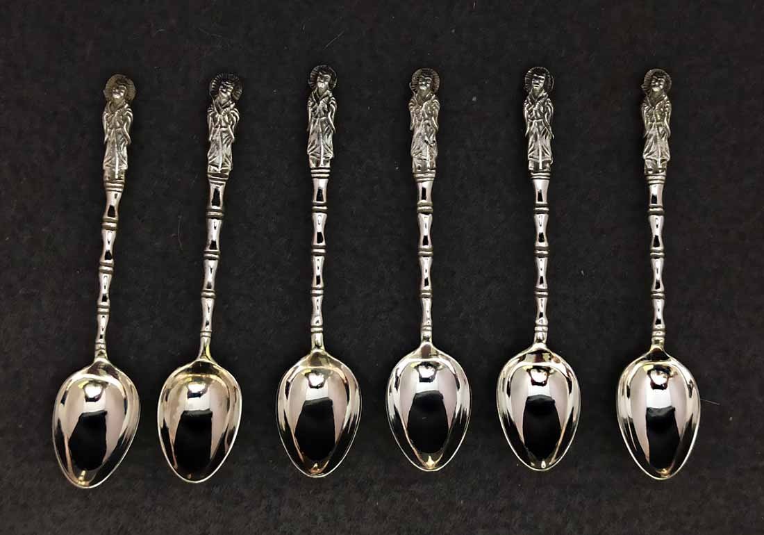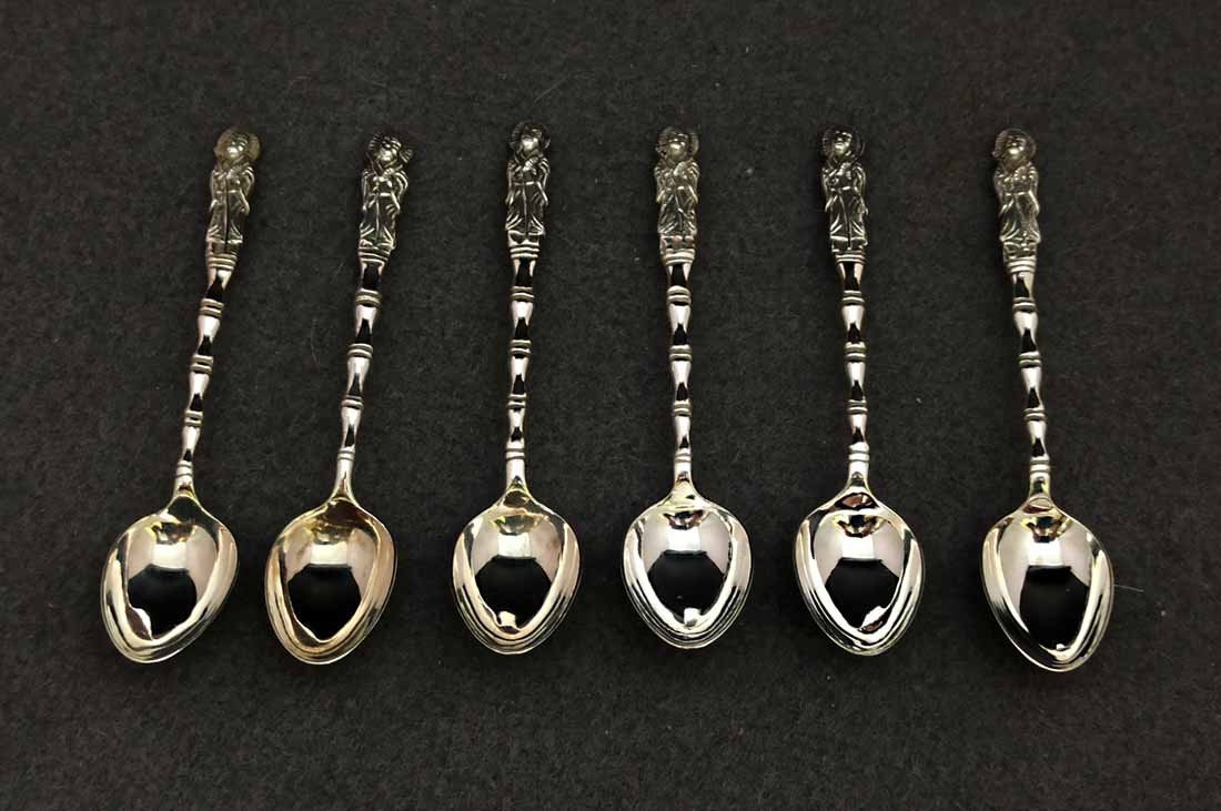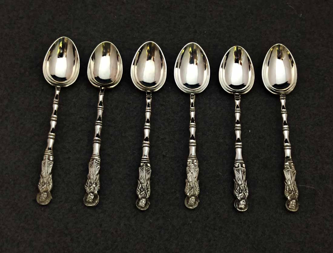 Silber, 6x Löffel mit Figur Silber 900, Espresso-, Mokka, Kaffeelöffel